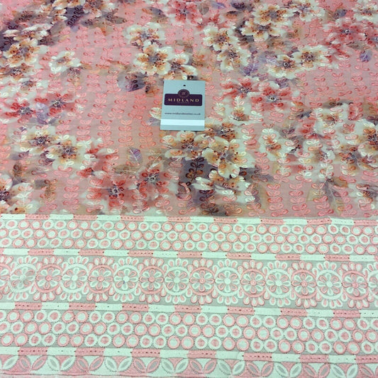 Floral Border Embroidered Broderie Anglaise Dress Fabric 139 cm M1198 Mtex