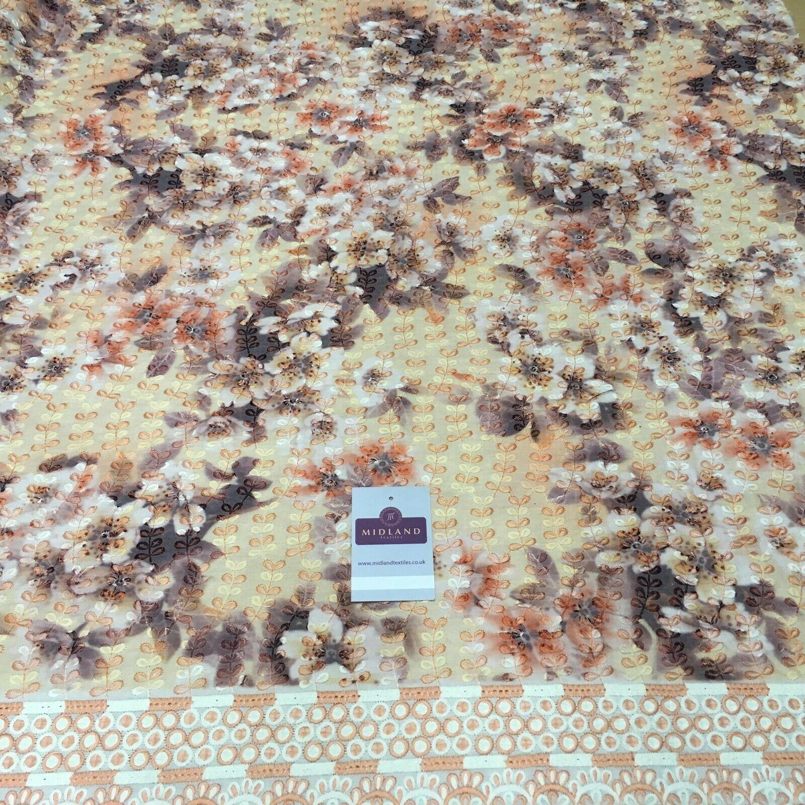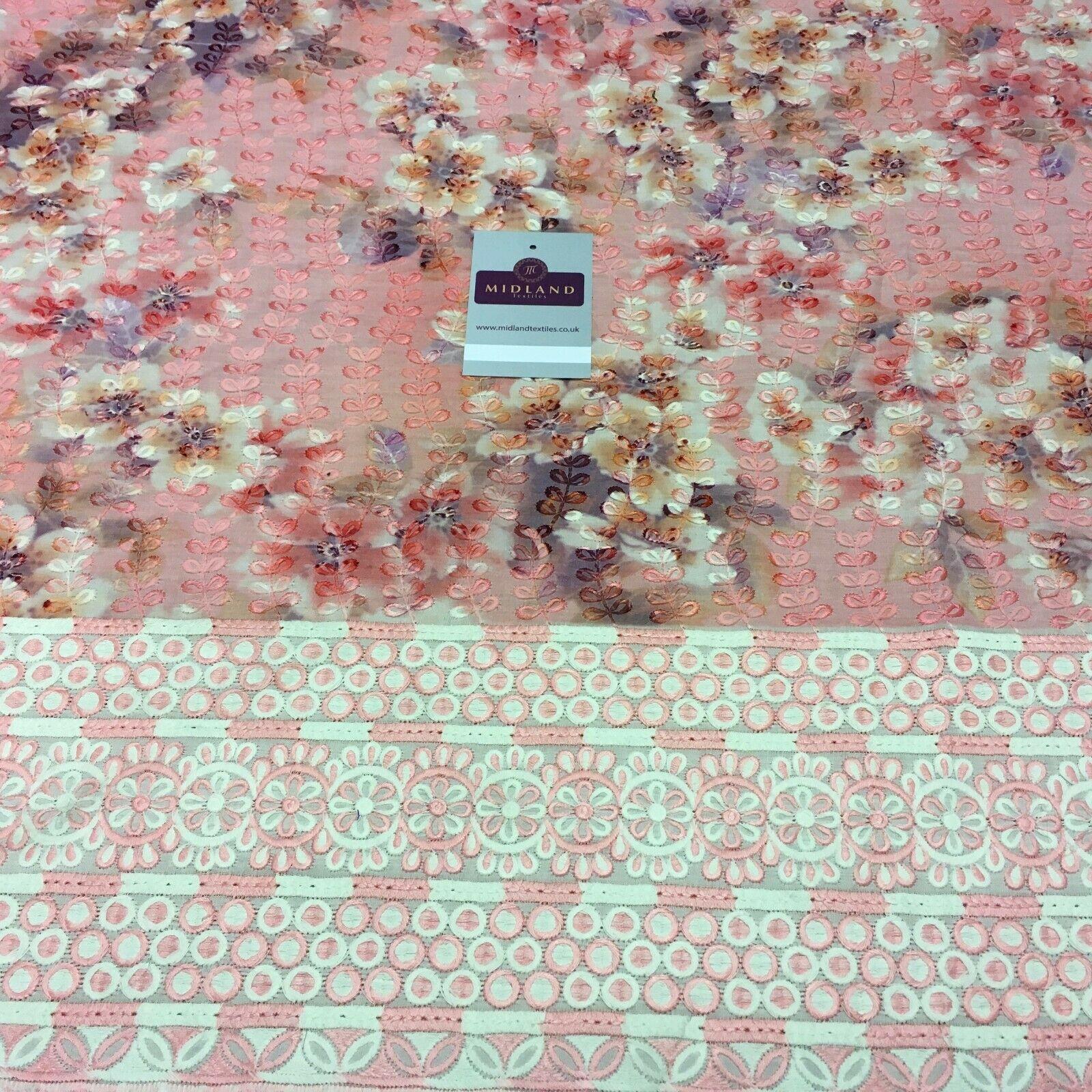 Midland Textiles LimitedItem Number M1198Description: Floral Border Embroidered Broderie Anglaise Dress Fabric 139 cm M1198 Mtex4 Colour: Width 139 cmSample Size approx 10cm * 10cmWashing Instructions: HandwashRETURNS POLICY: Once cut and despatched we cannot refund fabric orders, Please order a sample to avoid disappointment.If you have received a damaged or faulty item please contact us and we will do our best to resolve the problem as quickly as possible and without any further cost to yourself.