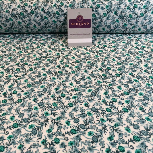Aqua Green Floral Printed Crepe chiffon Dress Fabric 150 cm Wide MK1190-9 Mtex