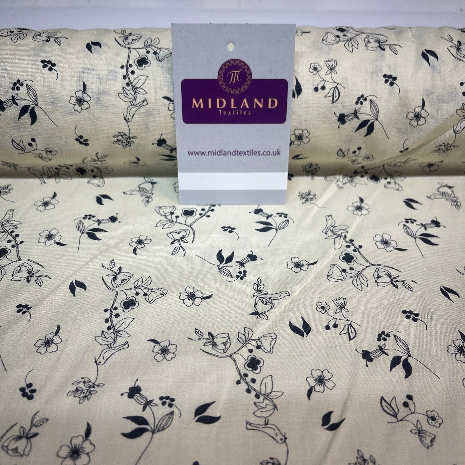 £5.99 Cream Bird Floral  100% Cotton Dress fabric M1400-49 Mtex