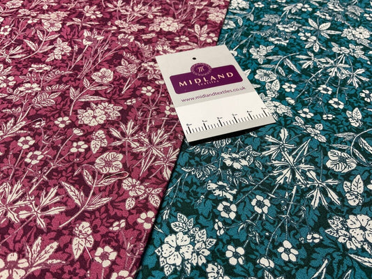 Floral 100% Cotton Poplin Mono printed fabric 44" M735 Mtex
