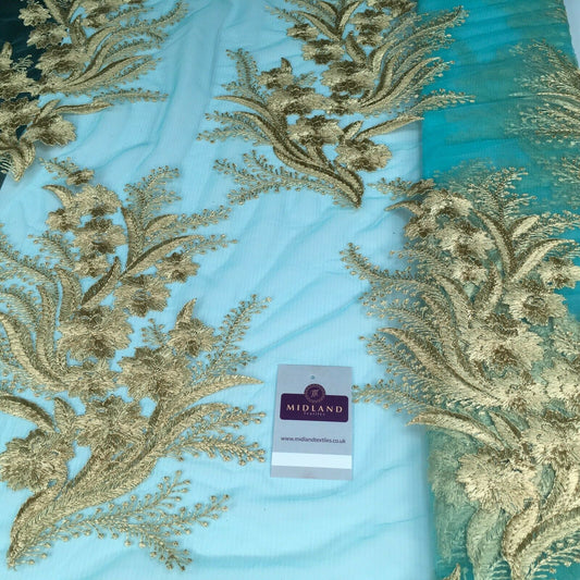Floral Gold Net Scalloped edge wedding dress Fabric 139 cm M1212 Mtex