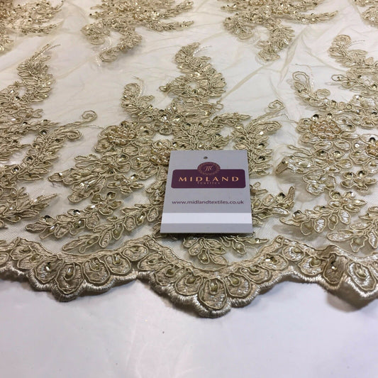 Floral Embellished with beads Scalloped Edged net dress fabric 58" M780 Mtex