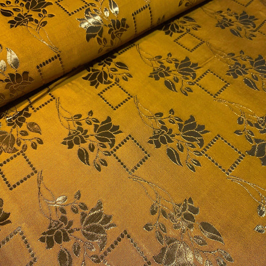 Floral Gold Textured Banarsi Lame Brocade Fabric 111 cm MA1124 Mtex