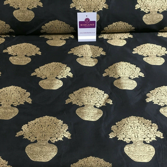 Indian gold Flower pot Banarsi Brocade waistcoat fabric 110 cm Wide MN1101 Mtex