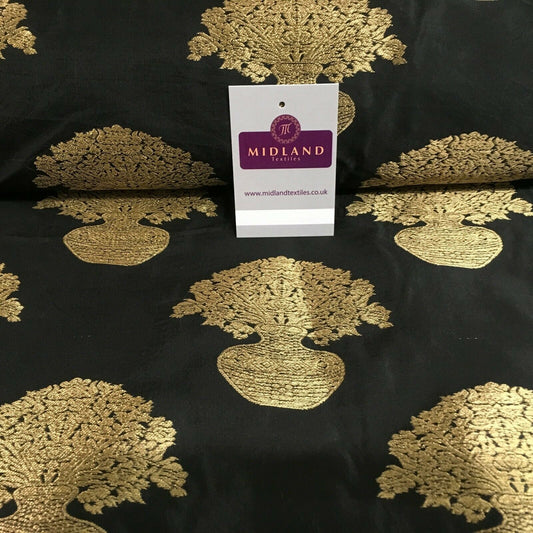 Indian Gold Large Flower Vase Banarsi Brocade fabric 125 cm Wide MN1099 Mtex
