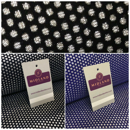 • Geometric Silver Spot Dot Flocked  Silver Lame Fabric 110 cm Wide MA1176 Mtex