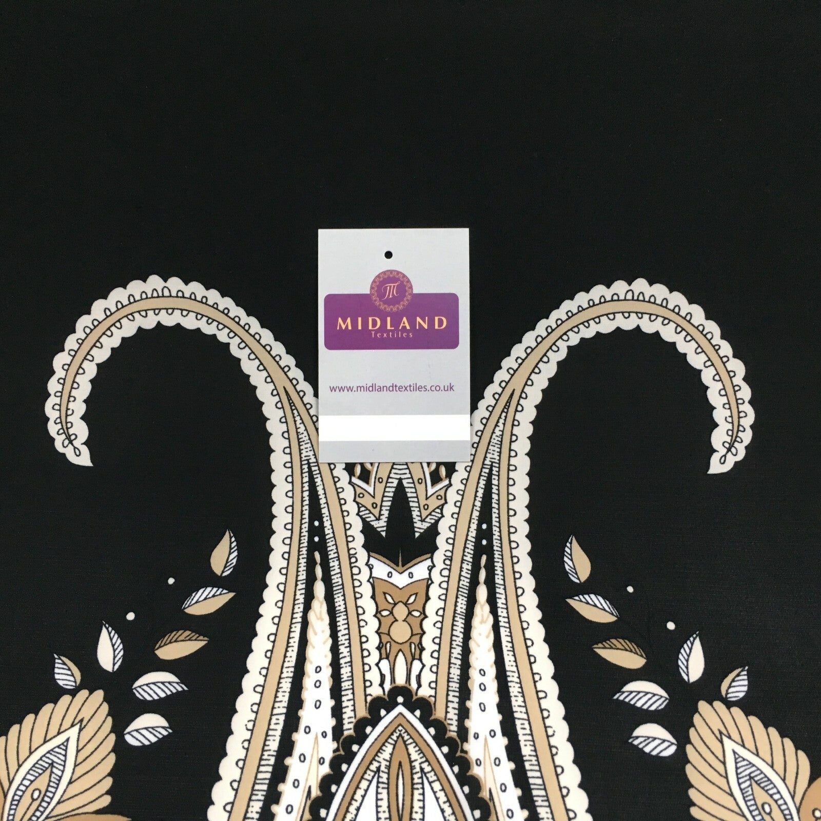 Description: Black beige paisley 80cm panel Stretch Ity Spandex Dress Fabric 147 cm M1200-8