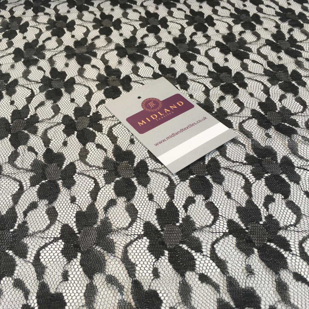 Midland Textiles Black Floral vintage lace wedding, evening dress fabric 40" M186-32 MtexPlease order a sample to avoid disappointment.If you require a sample, please select from the "length" option above. Sample size - approx 10cm x 10cmMaterial: LaceColour: BlackWidth: 40" Wide Pattern size: Width cm Height cmWeight: 90g/m²Use: Dress, evening dress, wedding fabricManufacturing: Textile finishing: Feel/Hanging: FirmCertificates: None FAQHow do I order more than 1m?Just enter the number of metres required in the buy now quantity box, if there are not enough metres listed, email to see if we have the required balance – normally we doWill multiple metres come in one continuous piece?Yes generally – but if it's essential please let us knowDo you combine p&p (shipping and handling) for multiple purchases? Yes always!Do you take Orders / Credit card payments over the phone?We only accept online Payments via Paypal Credit or debit card.Do you Ship outside the UK?Yes - please contact us for a priceA NOTE ABOUT COLOURS:We put a great deal of effort into taking images which represent the colours as closely as possible however the appearance of colours will always vary slightly from one computer screen to another.