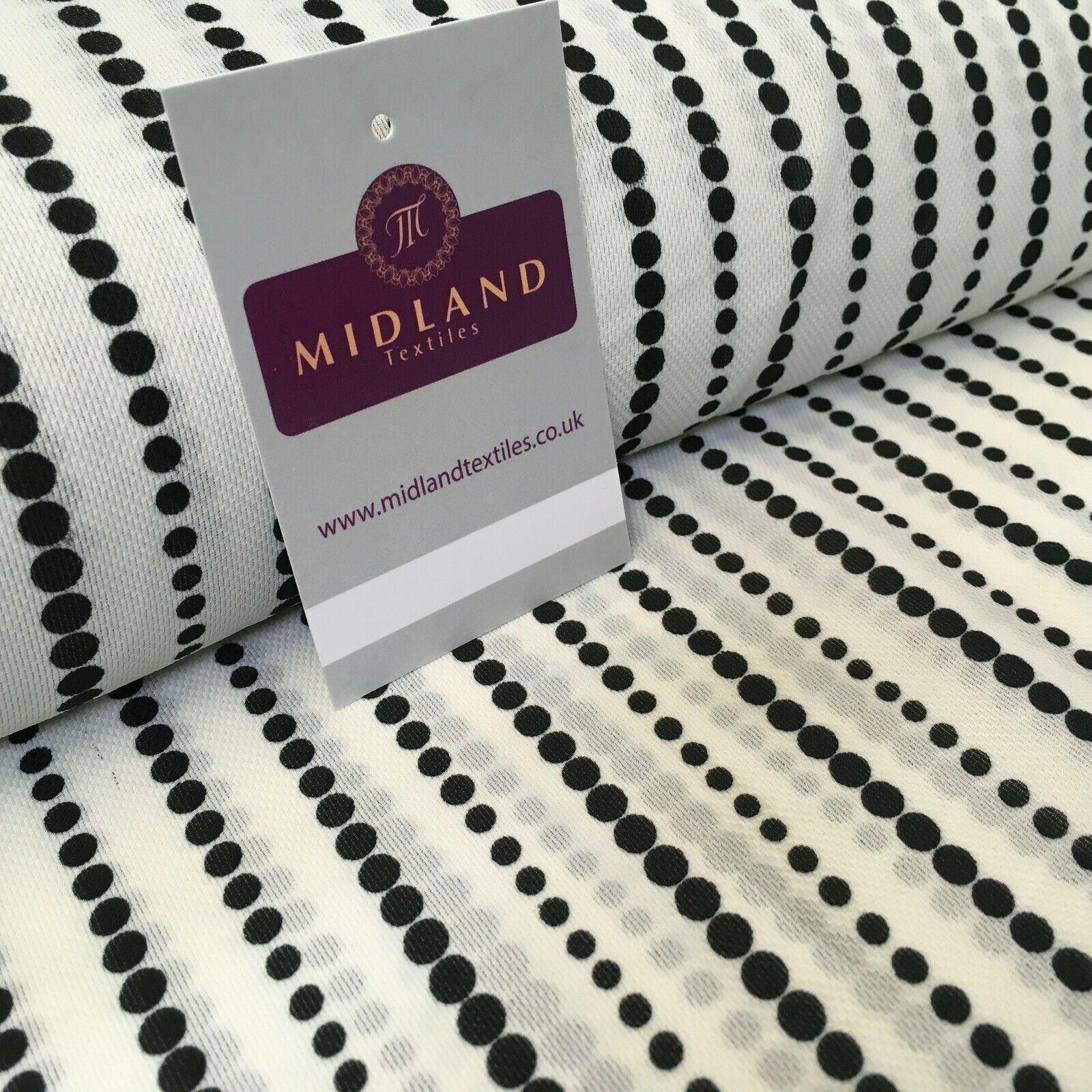Midland Textiles LimitedItem Number MK1185-9Description: Ivory Black Dot Stripped soft Georgette twist voile Dress Fabric 147cm MK1185-91 Colour: Width  147 cmSample Size approx 10cm * 10cmWashing Instructions: HandwashRETURNS POLICY: Once cut and despatched we cannot refund fabric orders, Please order a sample to avoid disappointment.If you have received a damaged or faulty item please contact us and we will do our best to resolve the problem as quickly as possible and without any further cost to yourself.