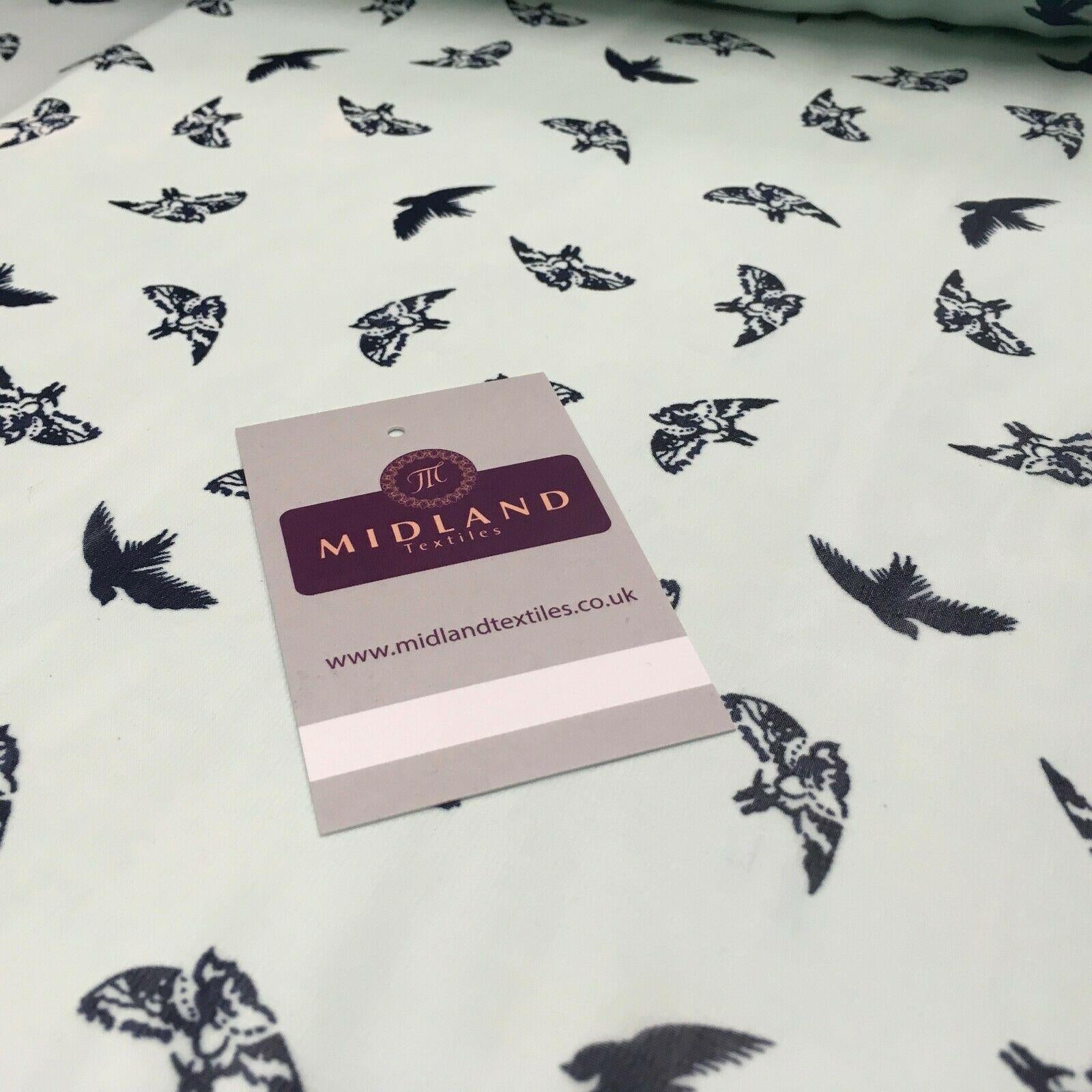 Midland Textiles LimitedItem Number MK1190-20Description: Mint Bird silhouette Printed Crepe chiffon Dress Fabric 150 cm MK1190-201 Colour: Width  150 cmSample Size approx 10cm * 10cmWashing Instructions: HandwashRETURNS POLICY: Once cut and despatched we cannot refund fabric orders, Please order a sample to avoid disappointment.If you have received a damaged or faulty item please contact us and we will do our best to resolve the problem as quickly as possible and without any further cost to yourself.