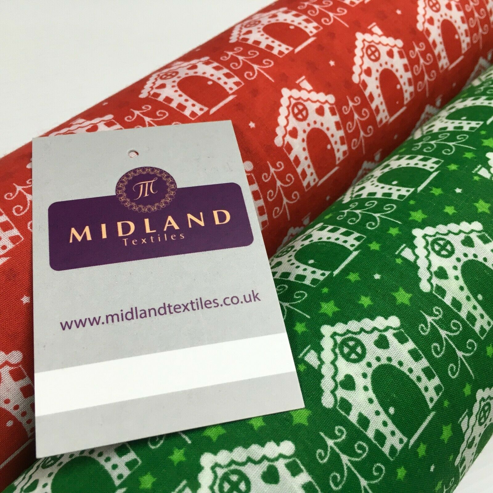 Midland Textiles LimitedItem Number MD1287Description: Christmas Bird House Printed Polycotton Fabric 110 cm MD1287 Mtex2 Colours: Width 110 cmGsm: 90 Gsm80% Polyester 20% CottonSample Size approx 10cm * 10cmWashing Instructions: HandwashRETURNS POLICY: Once cut and despatched we cannot refund fabric orders, Please order a sample to avoid disappointment.If you have received a damaged or faulty item please contact us and we will do our best to resolve the problem as quickly as possible and without any further cost to yourself.