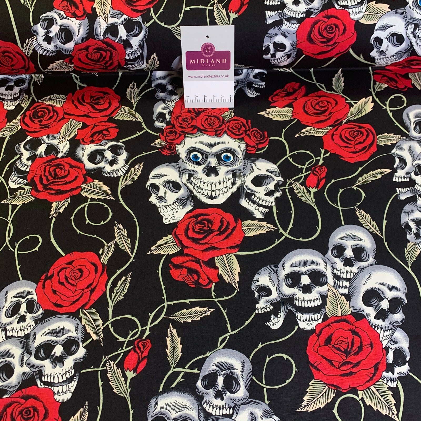 £5.99 Skull and roses printed 100% cotton poplin craft mask Fabric MD1399