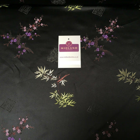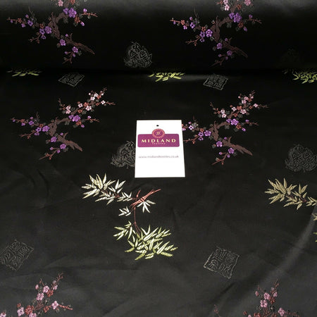 Black Floral Print Royal Micro Satin Fabric 58" M145-24