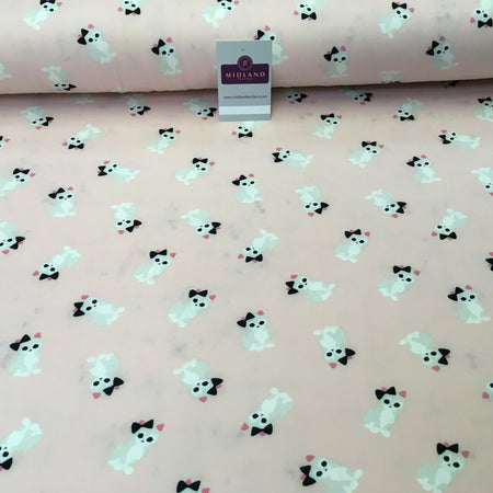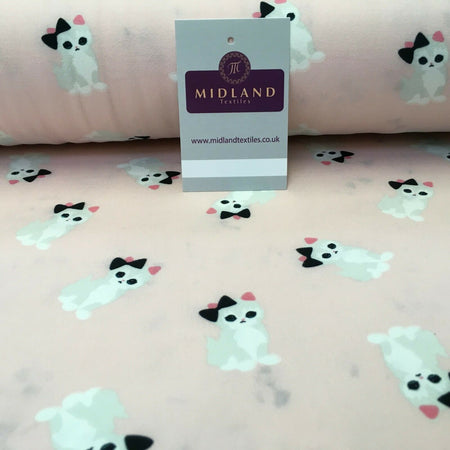 Baby Pink Kitten Printed Brushed Jersey Dress fabric 150cm Wide MK1106-1 Mtex