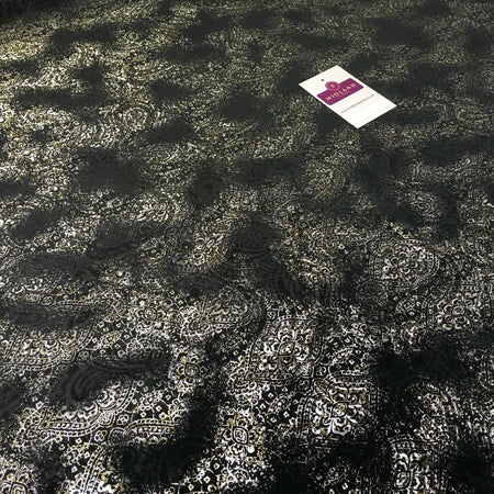 Black Gold Silver Embossed Foil Ornamental Velvet Velour stretch Fabric 58" M971