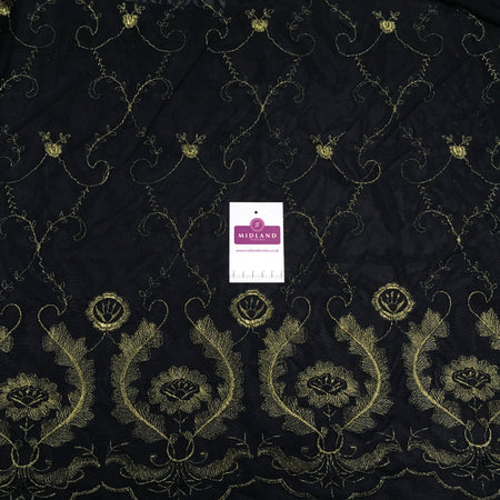 Black Georgette with floral sequins and scalloped edging dress fabric 54" Mtex