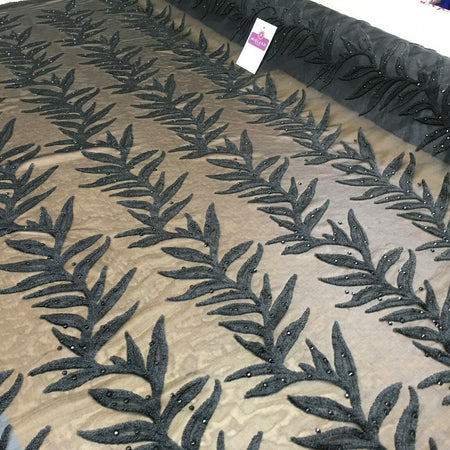 Black burnout Velvet net with black stones dress fabric 150 Cm MR1072 Mtex