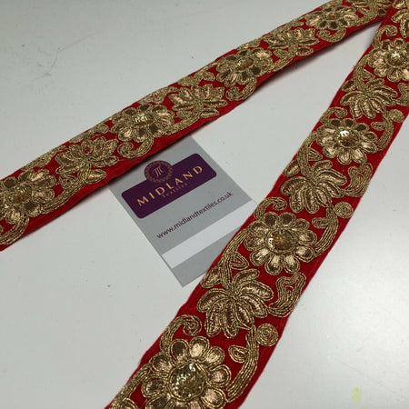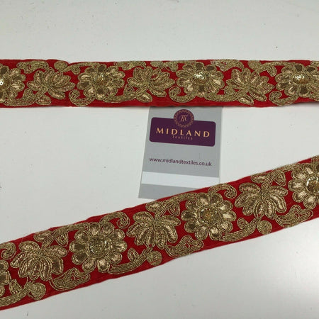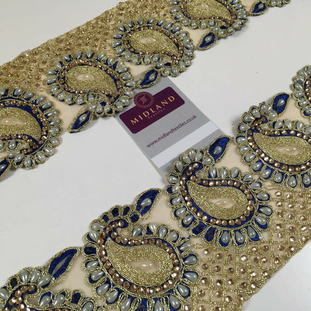 50mm wide Gold Organza Floral Embroided Pearl border saree edging M1346