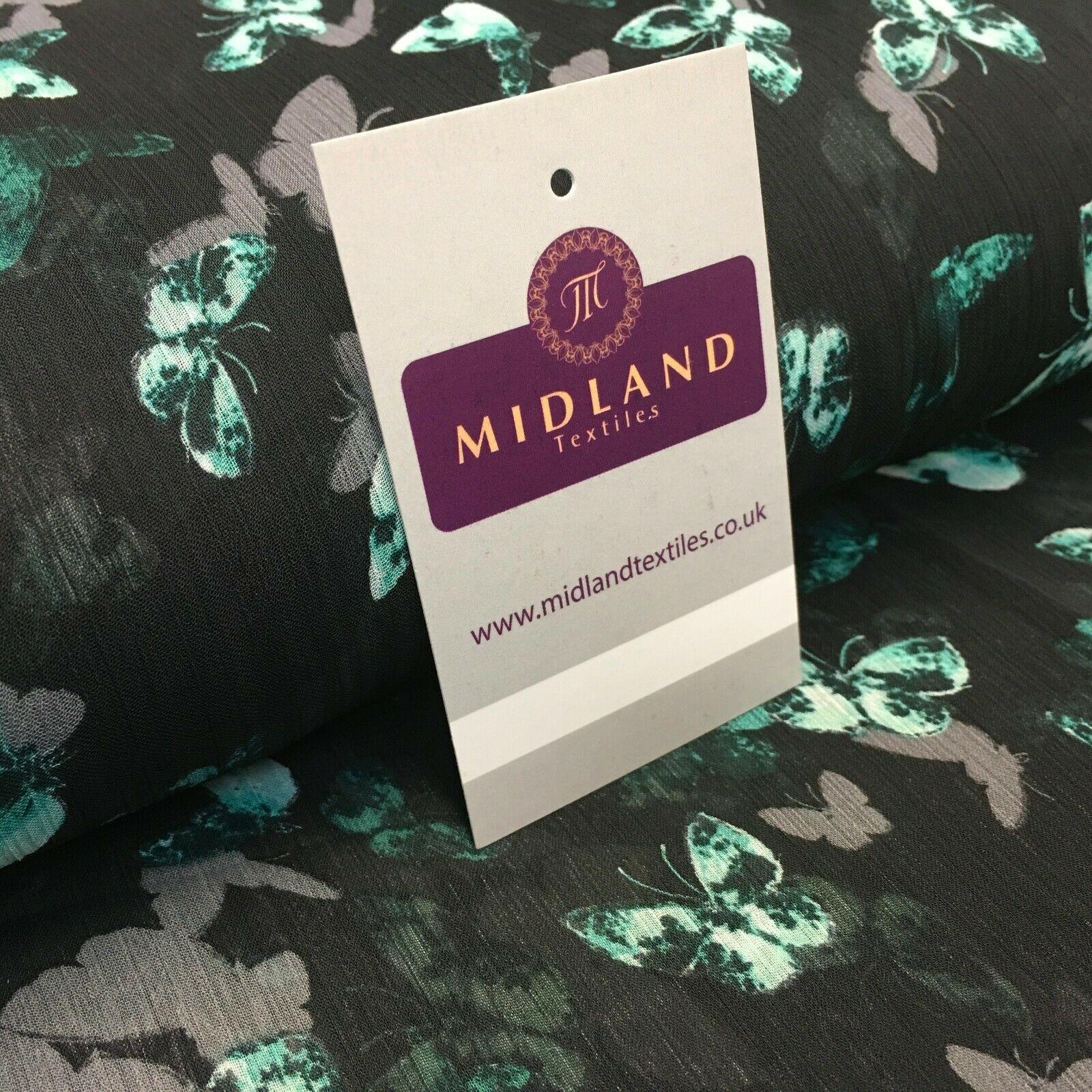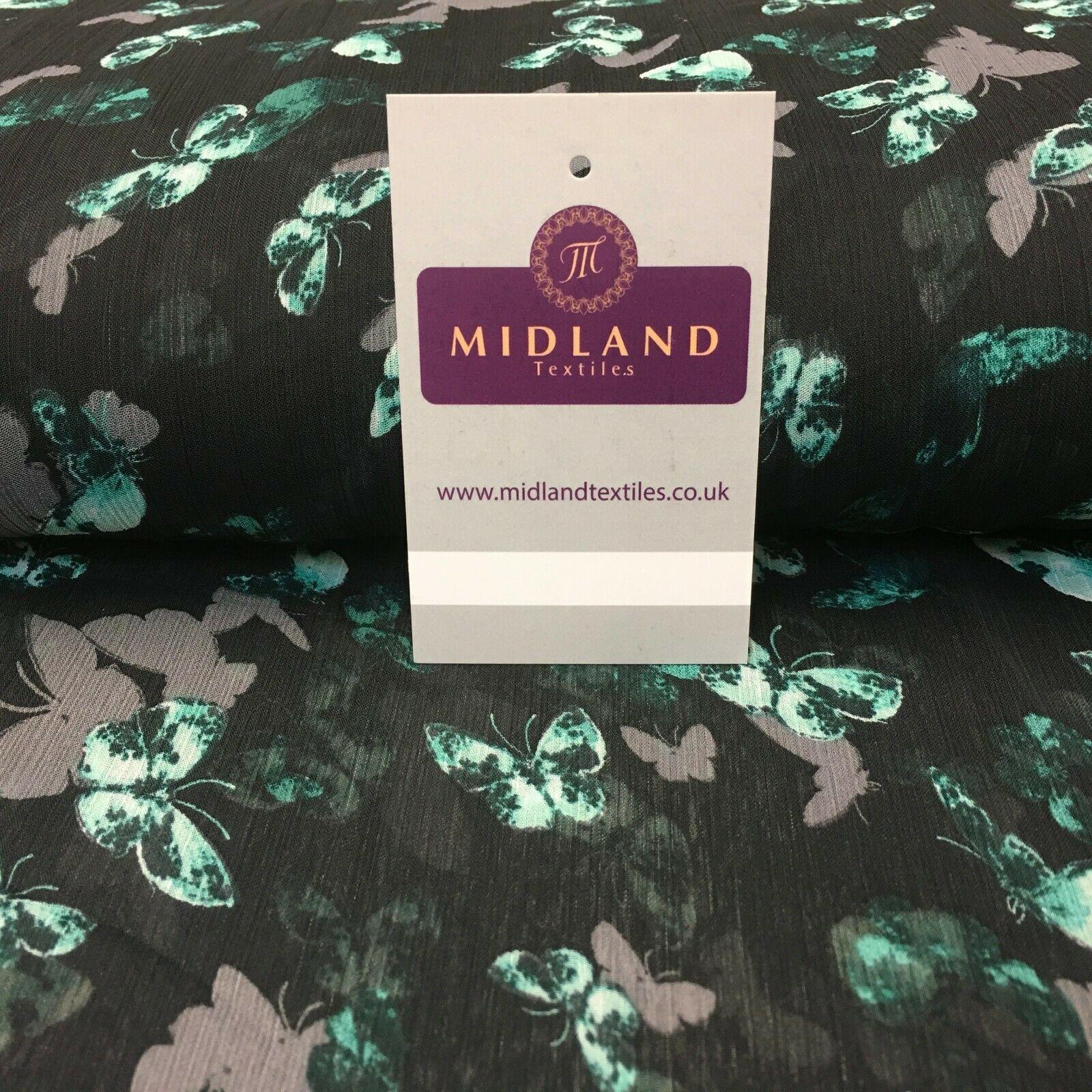 Black Green Butterfly Printed Crinkle Georgette Chiffon Fabric 150cm MK1090-24