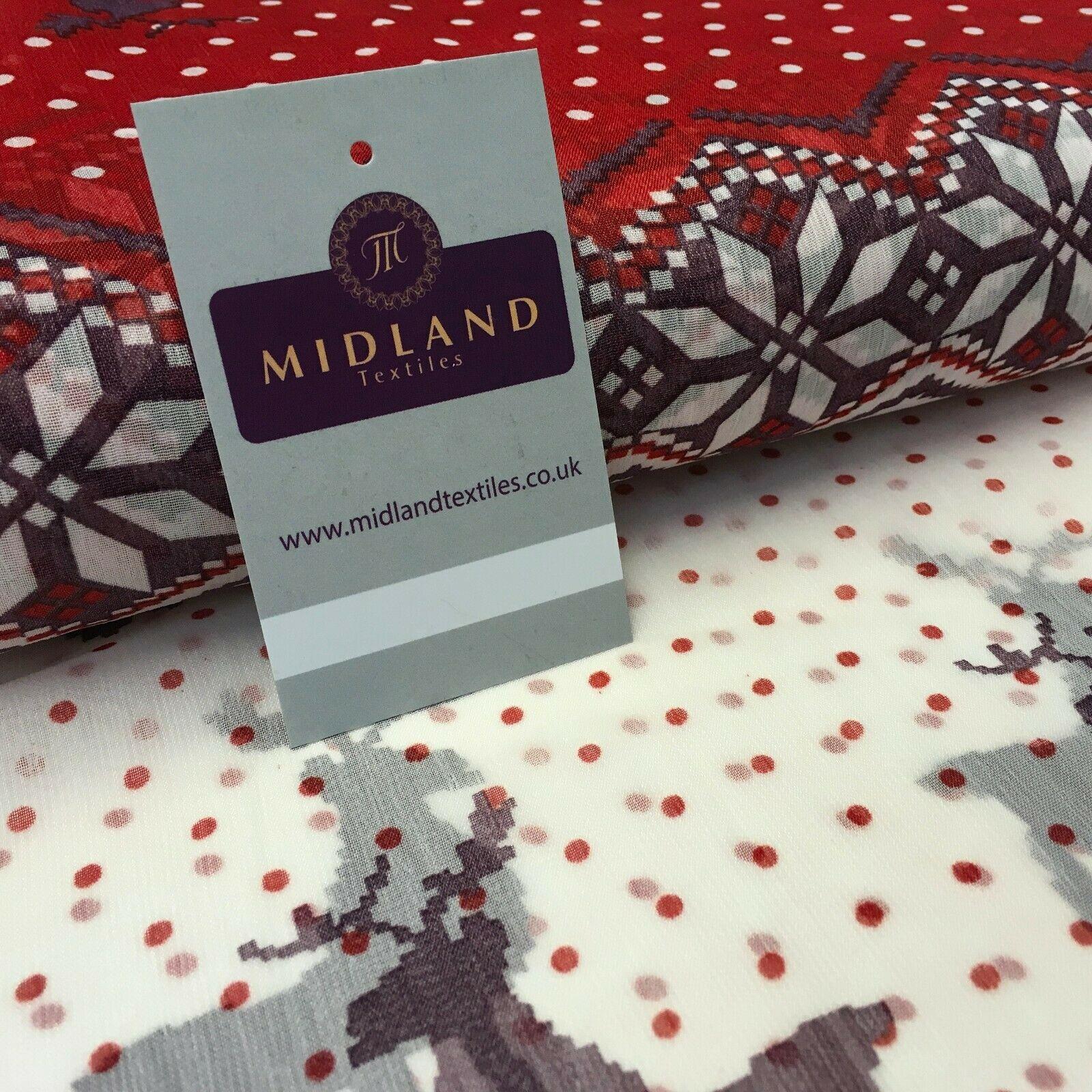 Red Reindeer printed Crinkle Georgette Chiffon fabric 150cm wide MK1090-21