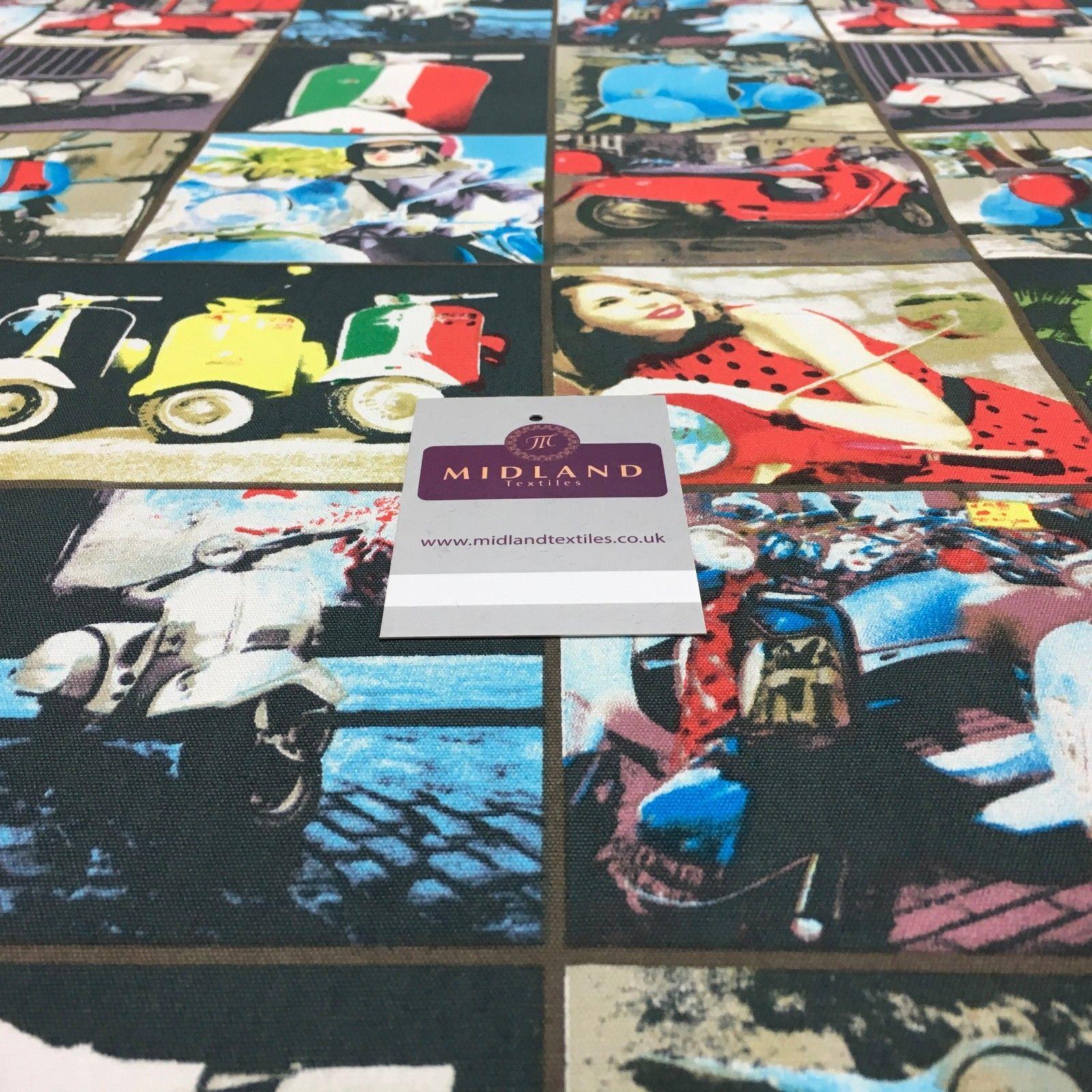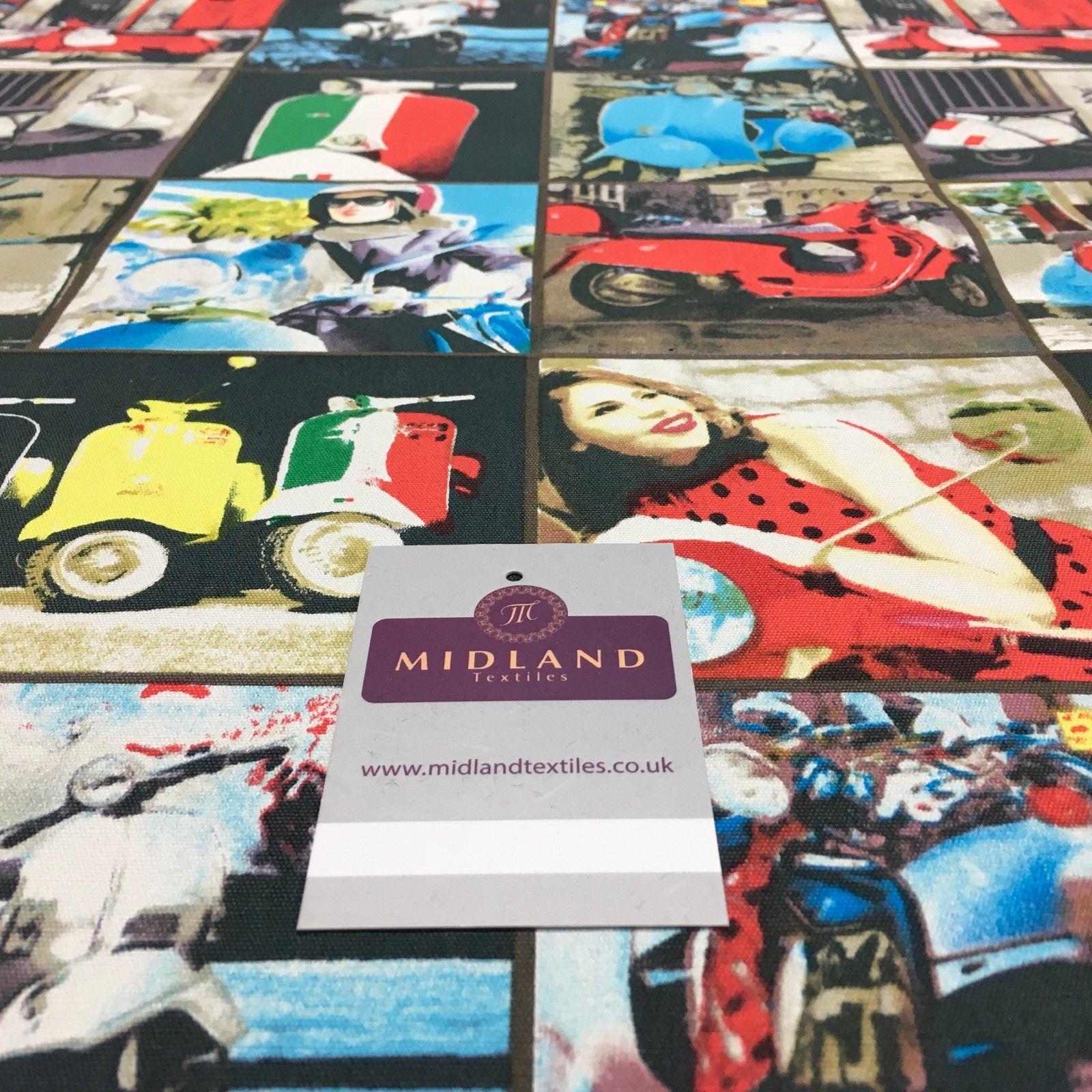 Grey Retro Italian Scooter Printed 100% Cotton Canvas Craft Fabric 58" MK856-15 Sample Size approx 10cm x 10cm Width: 58" Wide Textile finishing: Feel/Hanging: hangs well Certificates: NoneIf you have any questions/problems please do not hesitate to contact usIf you require a sample, please select from the "length" option above. Please order a sample to avoid disappointment.A NOTE ABOUT COLORS: We put a great deal of effort into taking images which represent the colors as closely as possible however the appearance of colors will always vary slightly from one computer screen to another.