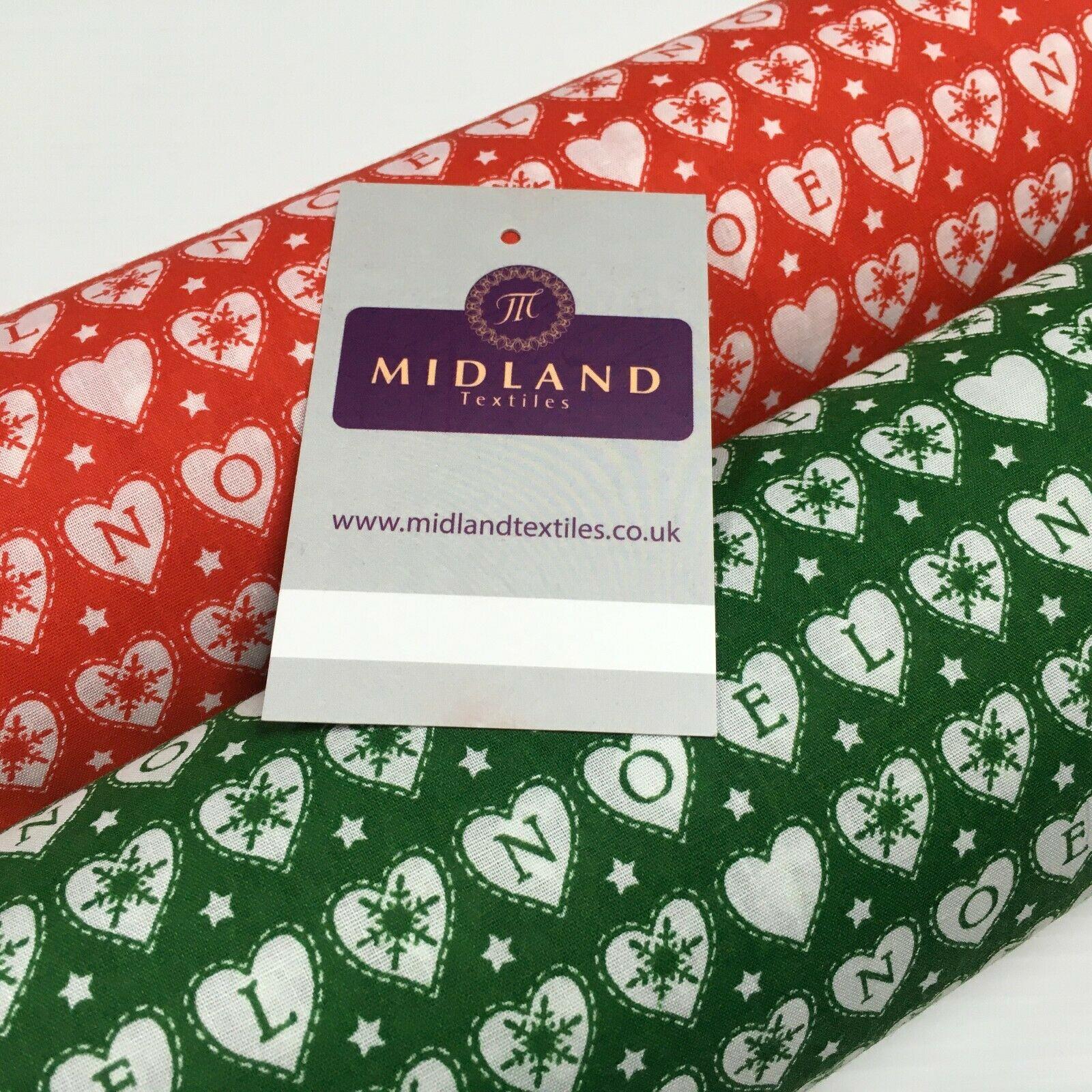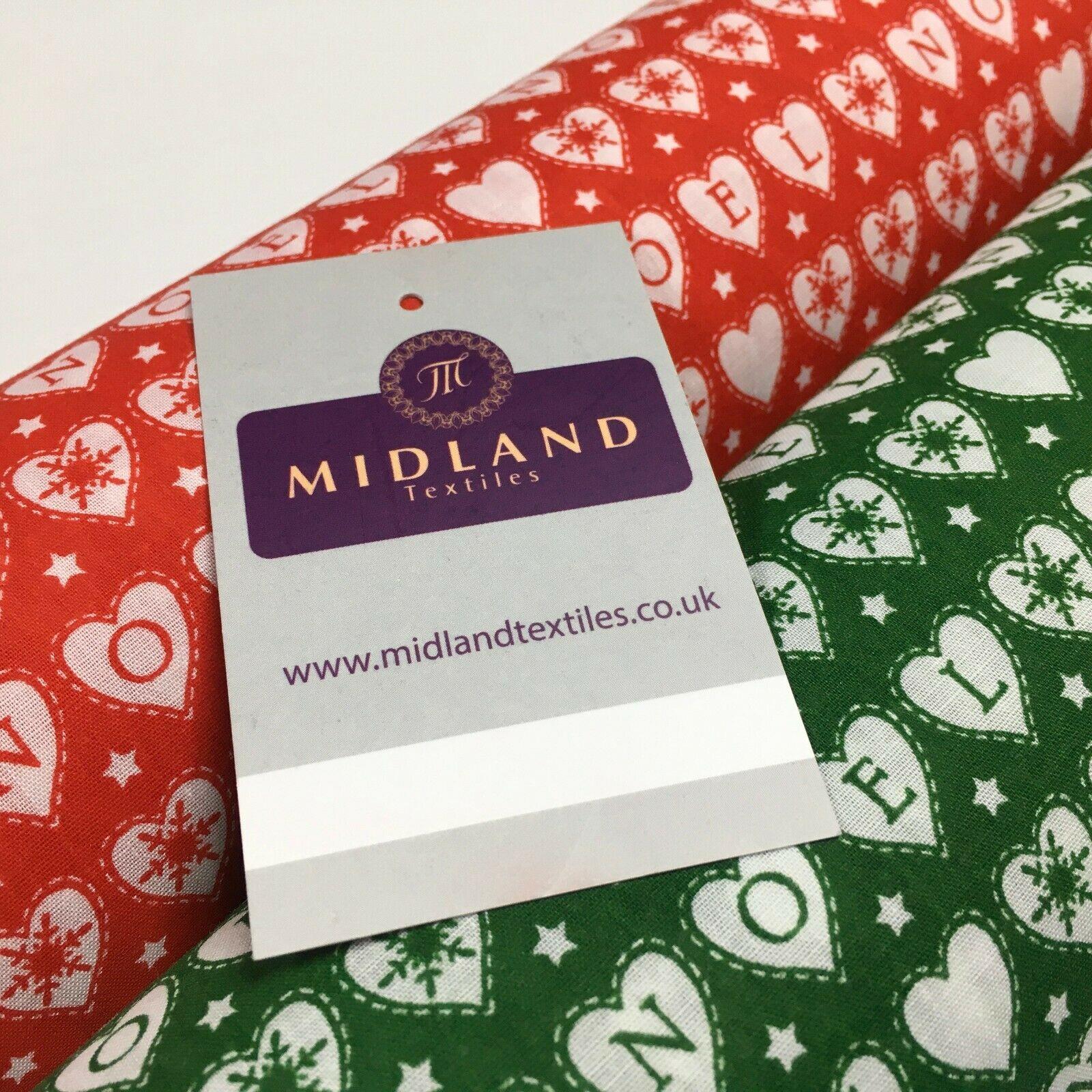 Midland Textiles LimitedItem Number MD1291Description: Noel Christmas Printed Xmas Polycotton Fabric 110 cm MD1291 Mtex20% Cotton 80% Polyester2 Colours: Width 110 cmSample Size approx 10cm * 10cmWashing Instructions: HandwashRETURNS POLICY: Once cut and despatched we cannot refund fabric orders, Please order a sample to avoid disappointment.If you have received a damaged or faulty item please contact us and we will do our best to resolve the problem as quickly as possible and without any further cost to yourself.