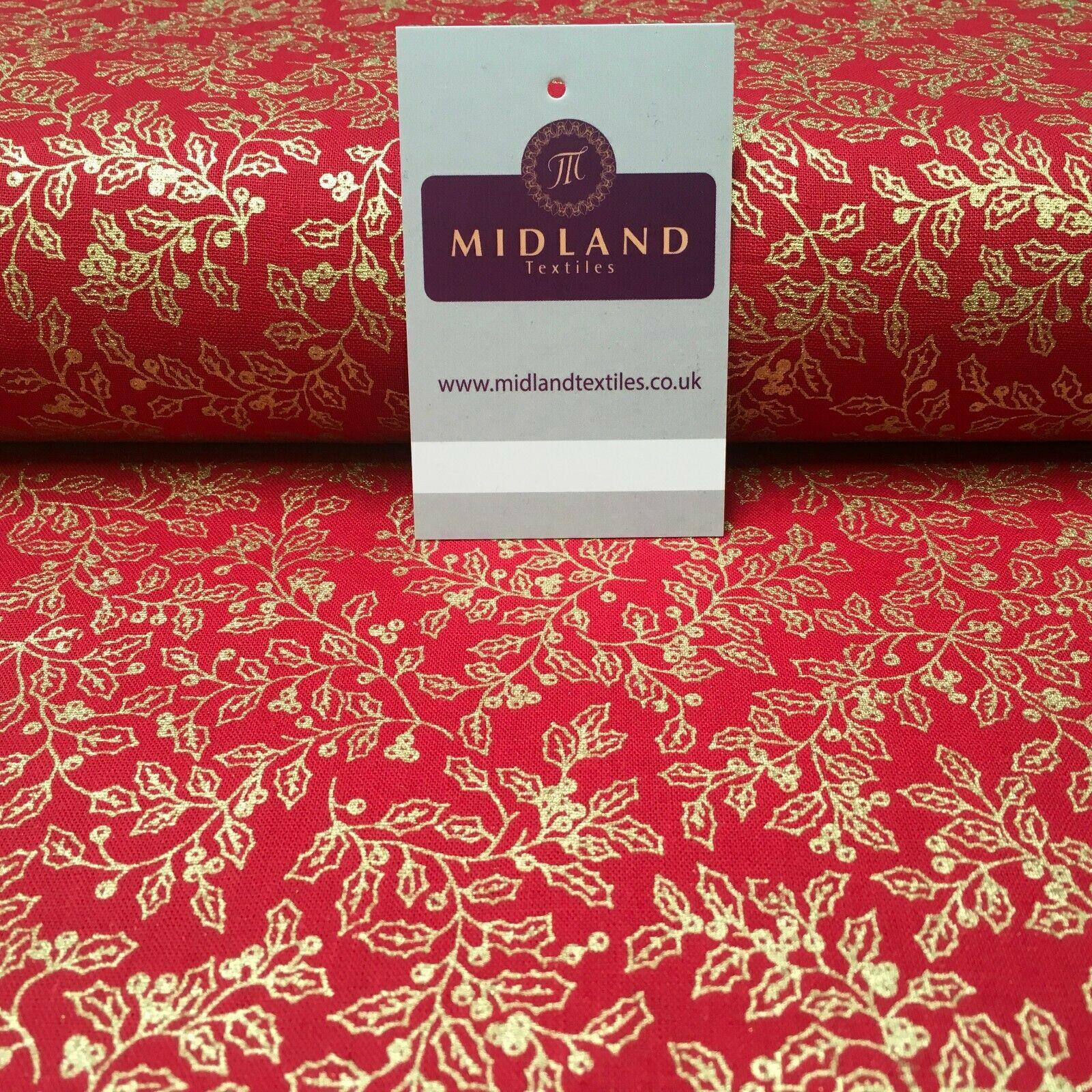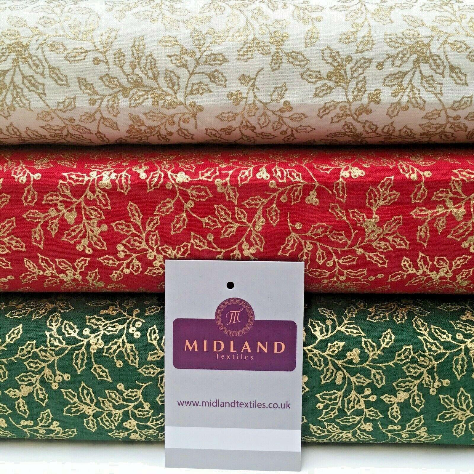 Midland Textiles LimitedItem Number MK1220Description: Vintage Christmas Mistletoe 100% Cotton Gold foil Print Fabric 114 cm MK12203 Colour: Width  114 cmSample Size approx 10cm * 10cmWashing Instructions: HandwashRETURNS POLICY: Once cut and despatched we cannot refund fabric orders, Please order a sample to avoid disappointment.If you have received a damaged or faulty item please contact us and we will do our best to resolve the problem as quickly as possible and without any further cost to yourself.