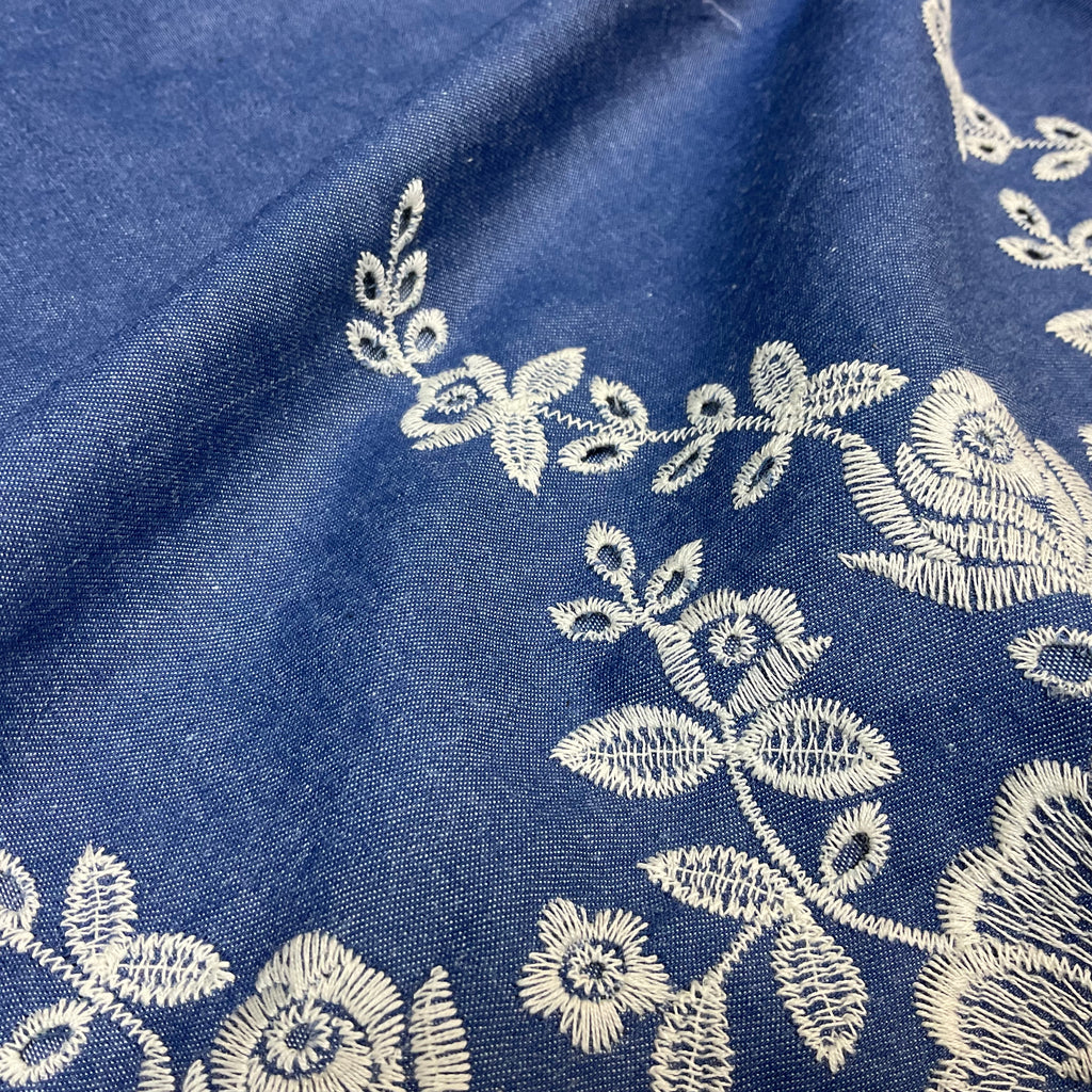 Whether you're a seasoned crafter or just starting out, this fabric offers endless possibilities. Create eye-catching clothing pieces, stylish accessories, or statement home decor items. The light blue denim provides a versatile base that complements a variety of styles and themes, while the intricate embroidery adds a pop of personality.