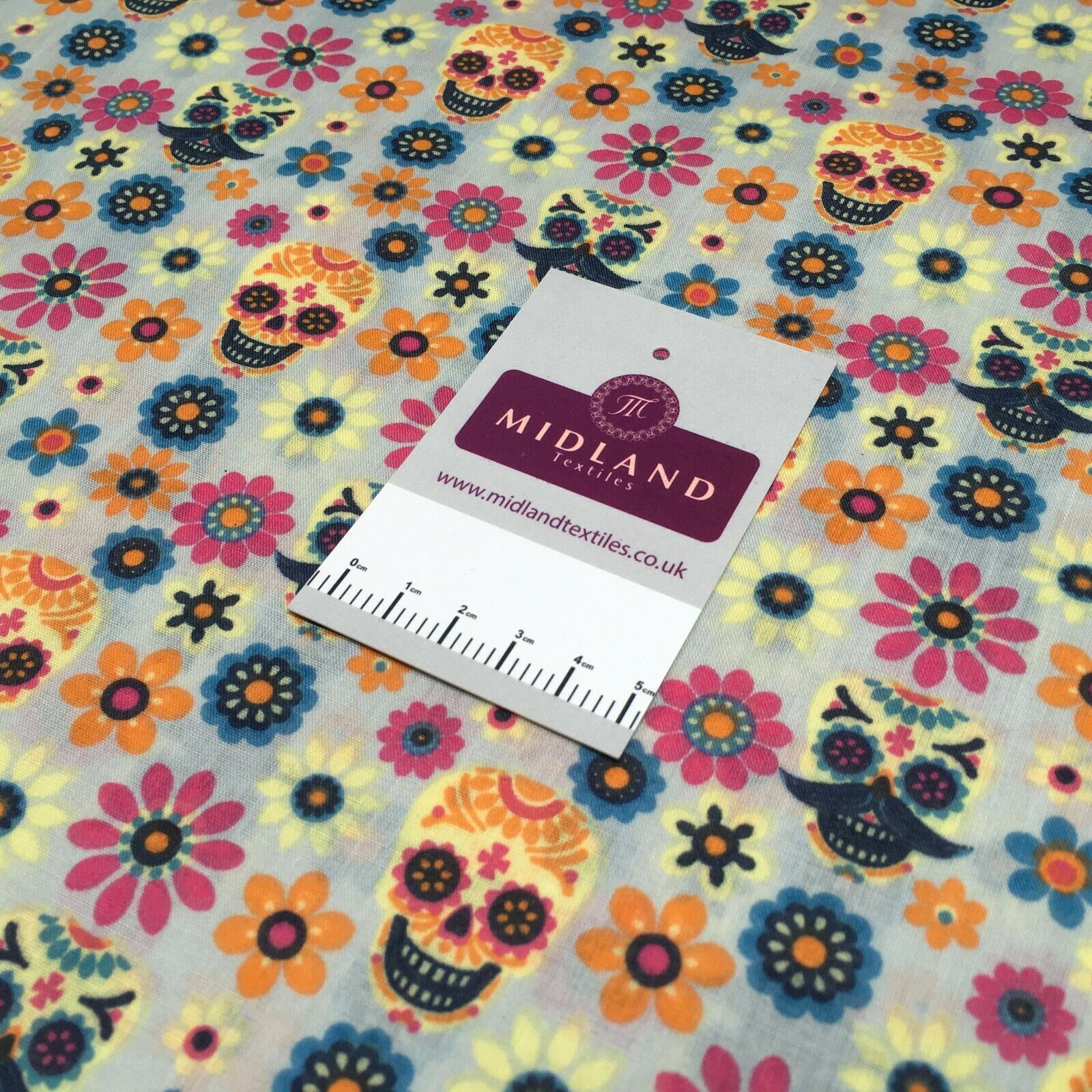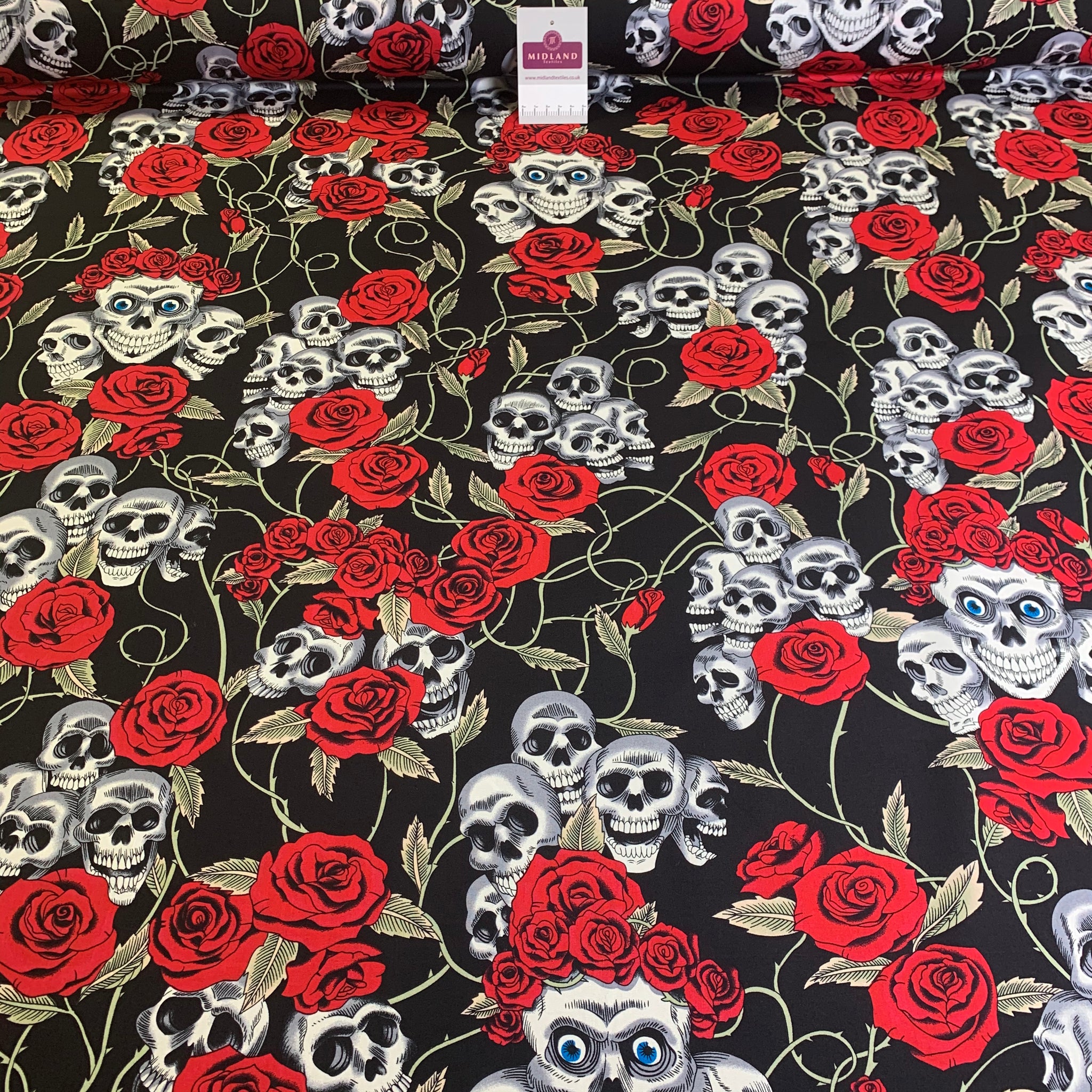 Halloween Skull and roses printed 100% cotton poplin craft mask Fabric 110 cm MD1395 Mtex
