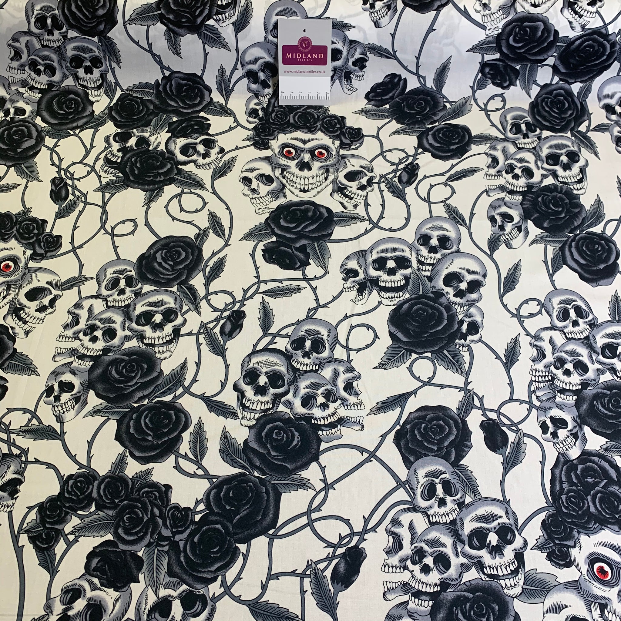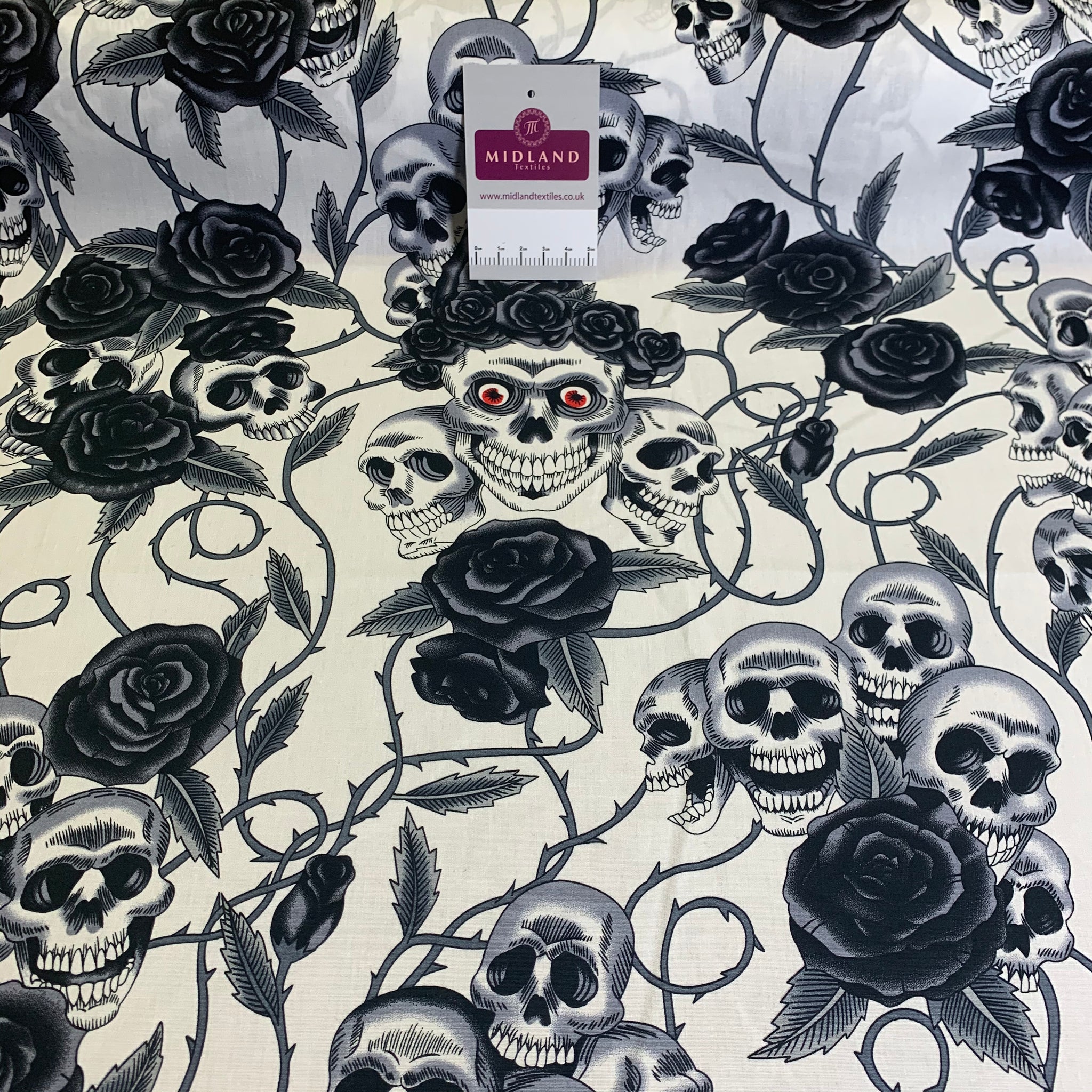 Halloween Skulls and bone roses Printed Polycotton fabric 114cm M1554