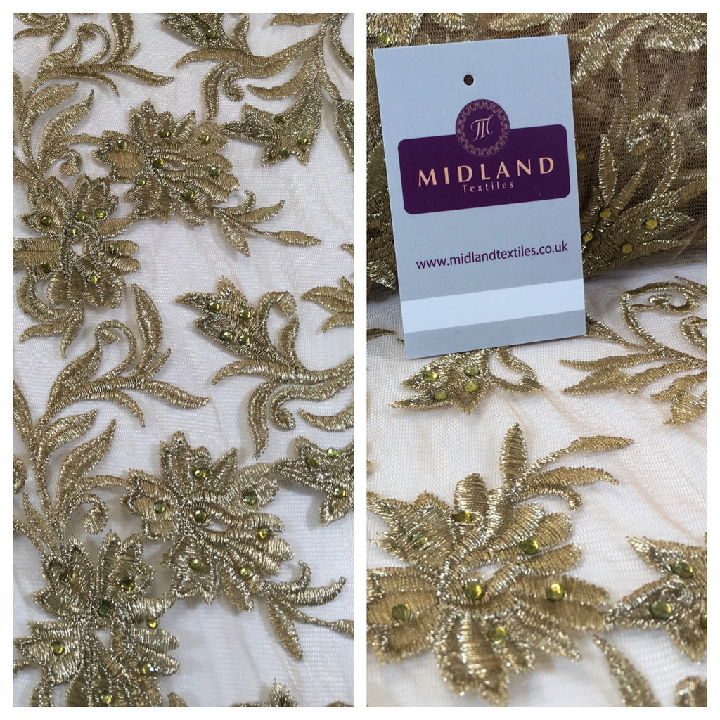 Metallic Embroided and Stone work lace mesh Dress Net Fabric 46" Wide M625