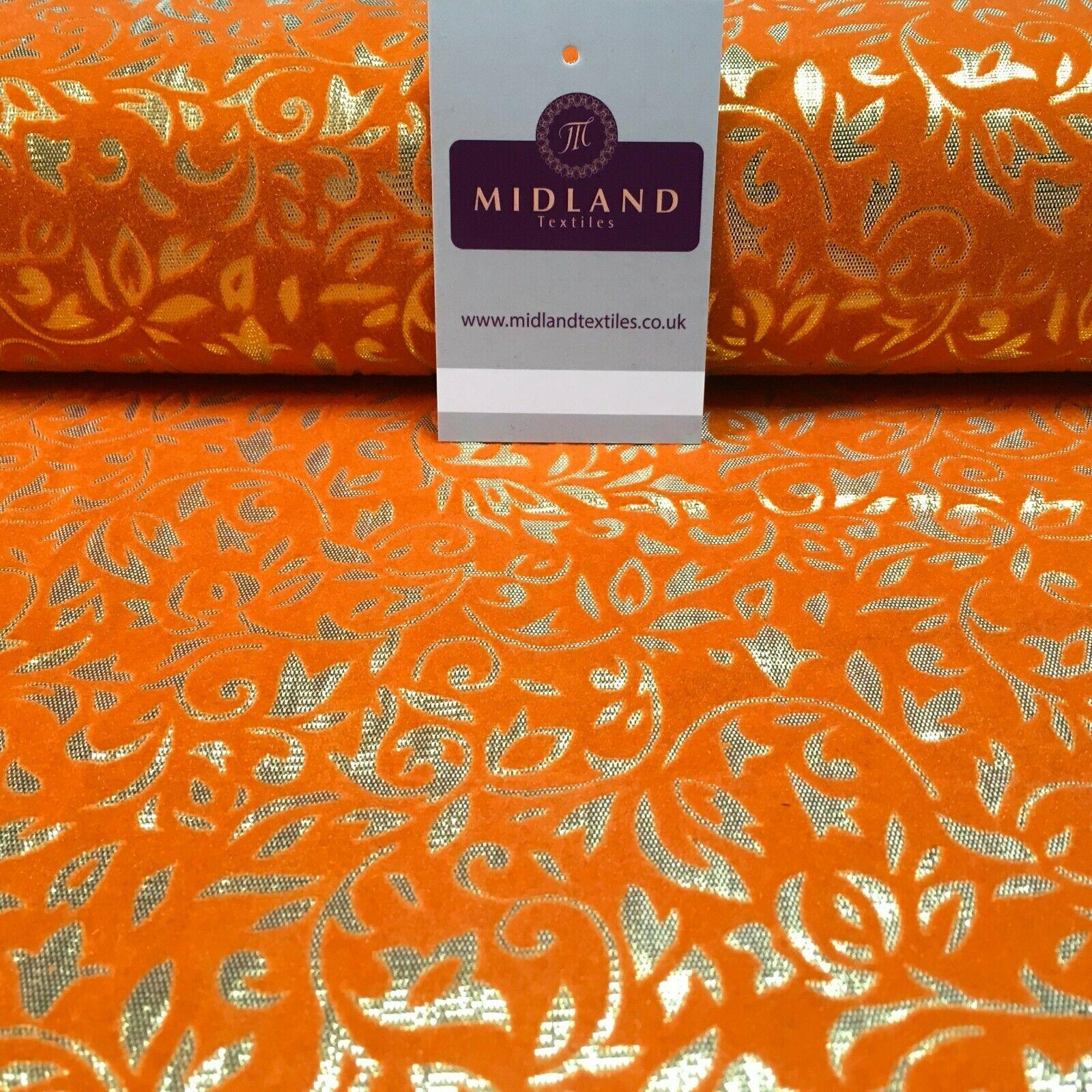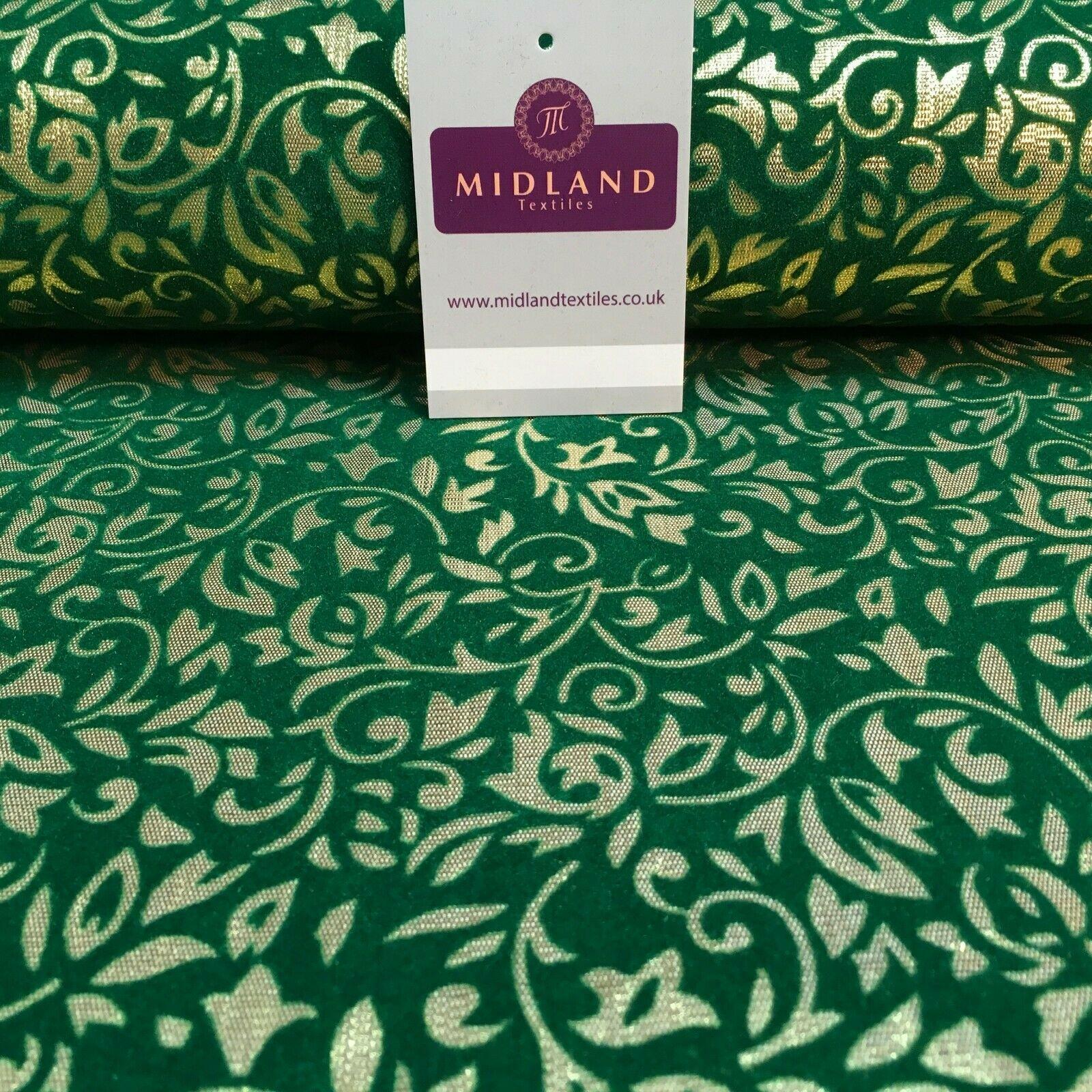 Floral Ornamental Flocking Gold Lame Fabric 110 cm Wide MA1175 Mtex