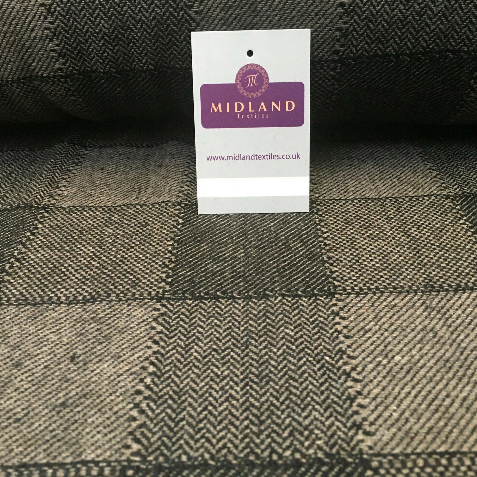 Description: Brown & Black Check wool blend Melton Coating Poly Boucle Fabric 147 cm MK1194-5