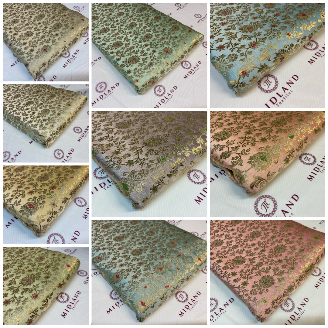 • Indian Floral wedding Brocade Fabric ideal for waistcoats 114cm wide M1772