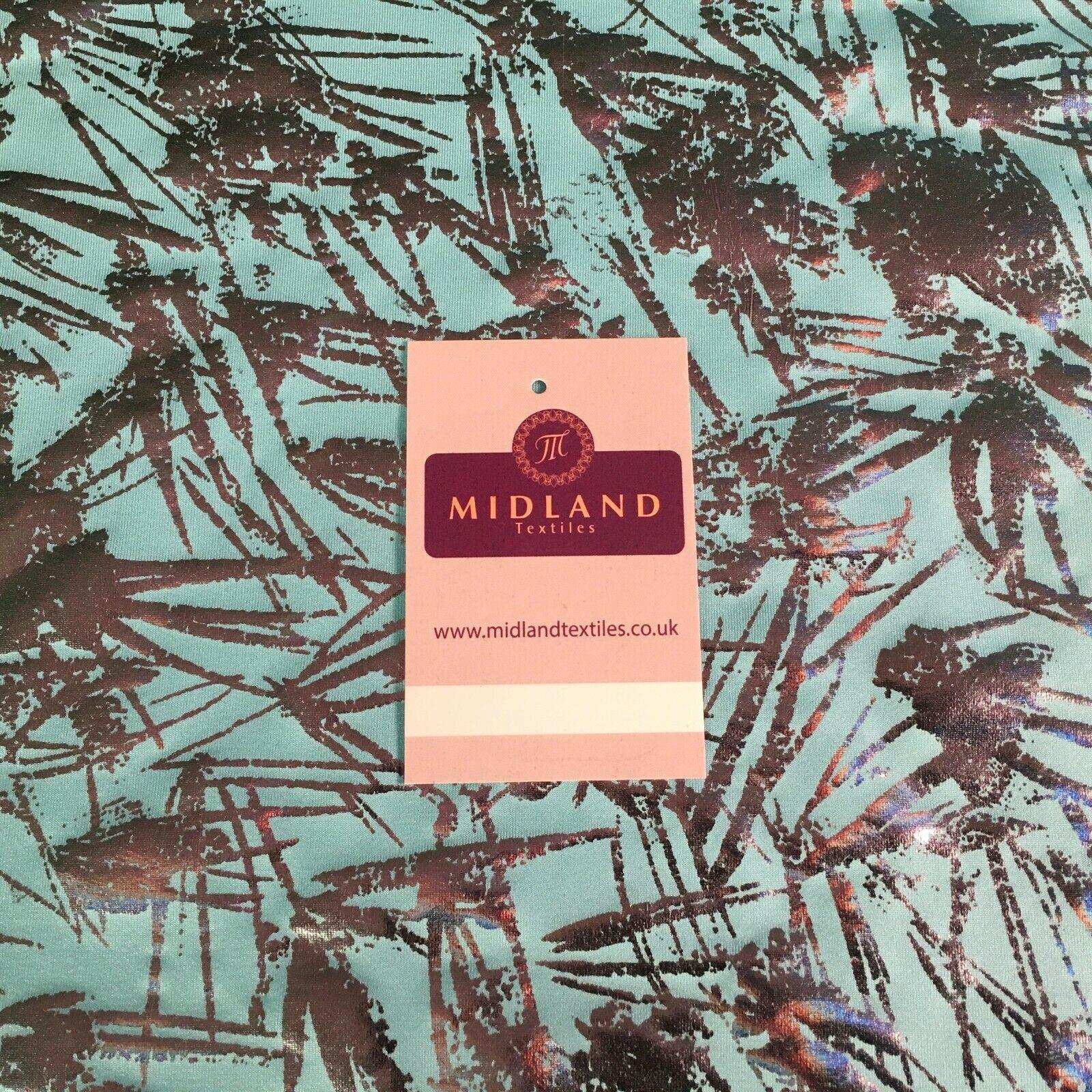 Midland Textiles LimitedItem Number MU1269Description: Abstract Holographic Spandex Jersey Foil Stretch Print Dress Fabric 150cm MU1269Width 150 cmSample Size approx 10cm * 10cmWashing Instructions: HandwashRETURNS POLICY: Once cut and despatched we cannot refund fabric orders, Please order a sample to avoid disappointment.If you have received a damaged or faulty item please contact us and we will do our best to resolve the problem as quickly as possible and without any further cost to yourself.