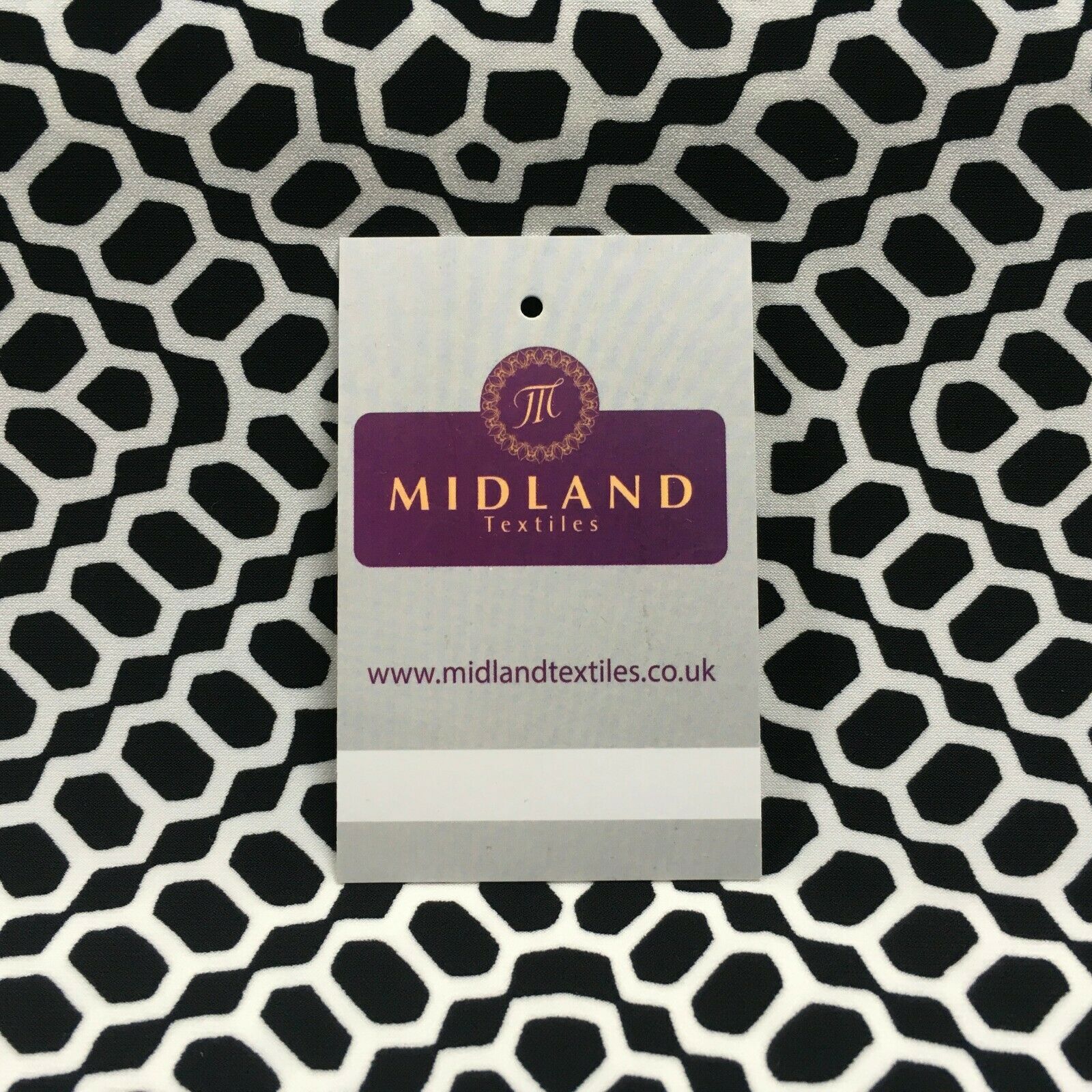 Midland Textiles LimitedItem Number M1200-6Description: Black geometric Cotton Stretch Ity Spandex Dress Fabric 147 cm M1220-6 Mtex1 Colour: Width 147cmSample Size approx 10cm * 10cmWashing Instructions: Hand WashRETURNS POLICY: Once cut and despatched we cannot refund fabric orders, Please order a sample to avoid disappointment.If you have received a damaged or faulty item please contact us and we will do our best to resolve the problem as quickly as possible and without any further cost to yourself.