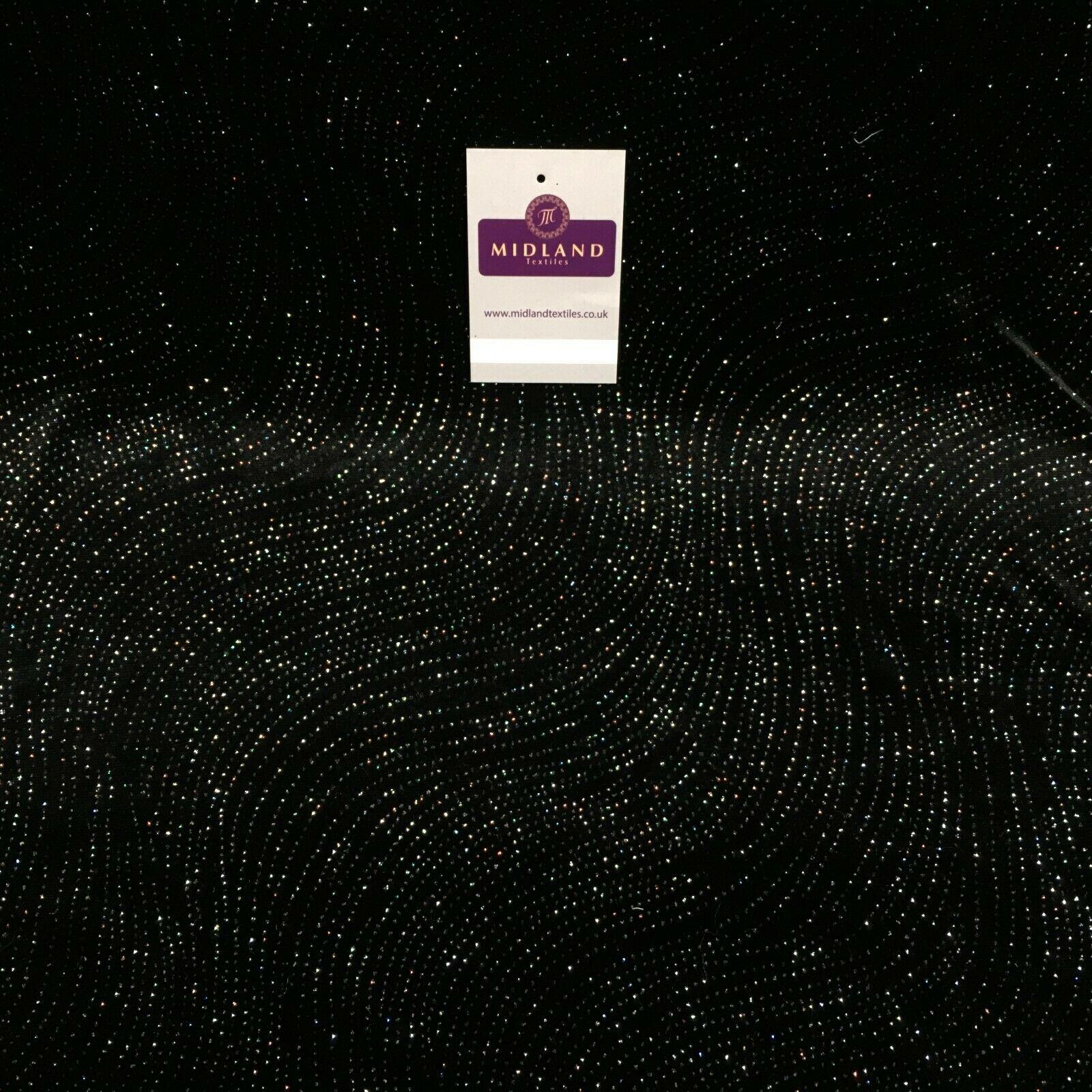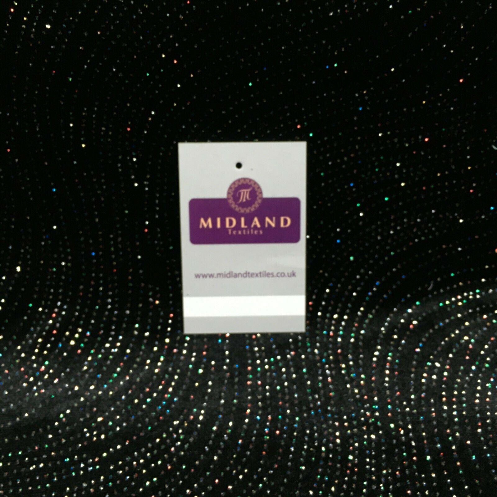 Midland Textiles LimitedItem Number MV1294-3Description: Black Wave 2 Way Stretch Spandex Velvet Rainbow Glitter Fabric 150cm MV1294-3Width 150 cmSample Size approx 10cm * 10cmWashing Instructions: HandwashRETURNS POLICY: Once cut and despatched we cannot refund fabric orders, Please order a sample to avoid disappointment.If you have received a damaged or faulty item please contact us and we will do our best to resolve the problem as quickly as possible and without any further cost to yourself.