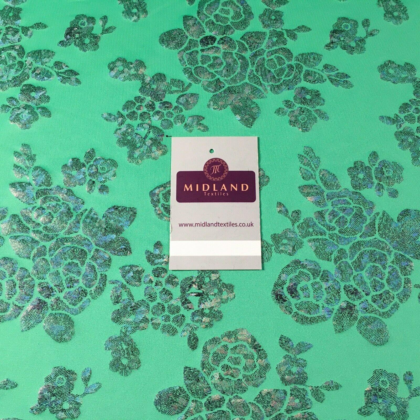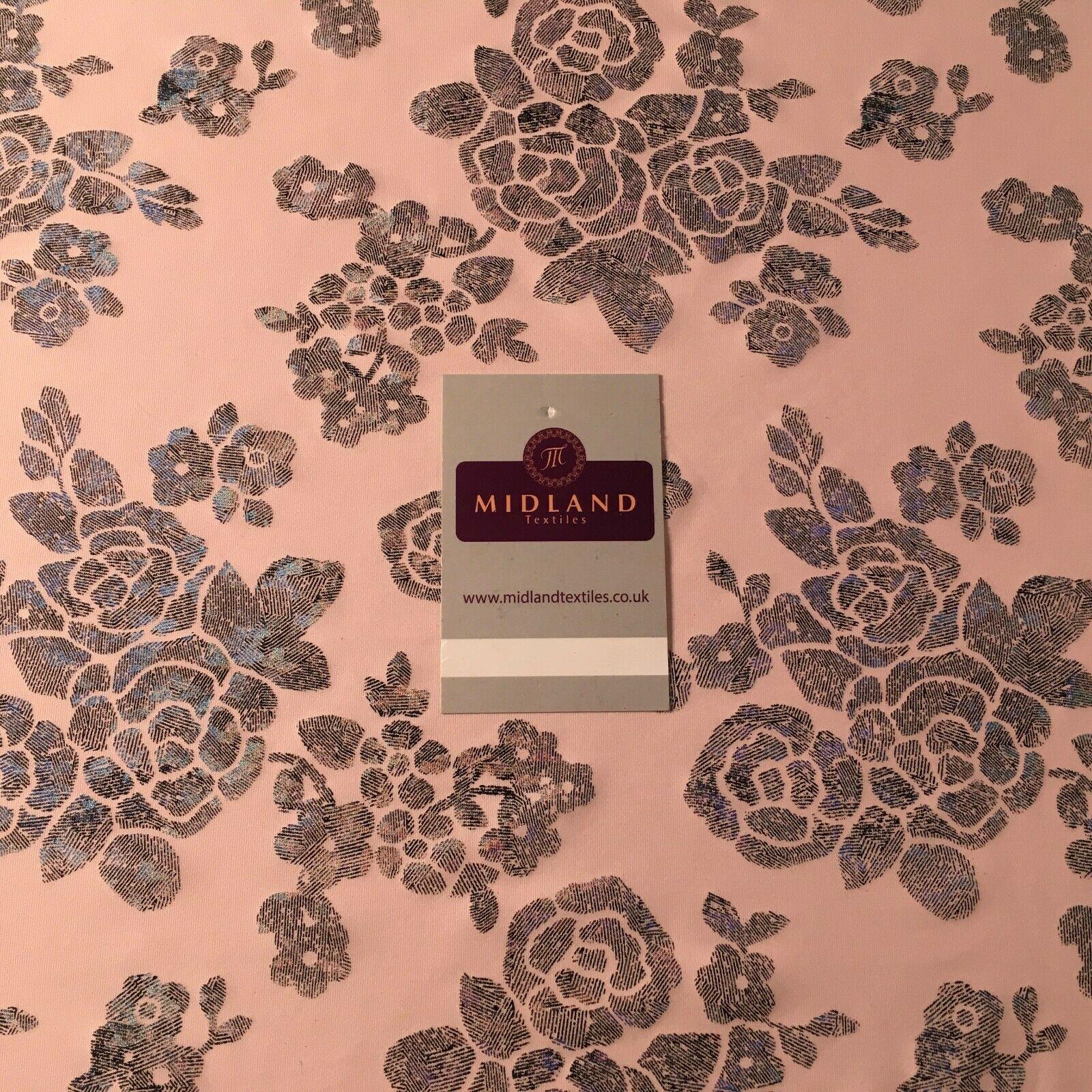Description: Floral Rose Spandex Jersey Foil Stretch Dress Fabric 150cm MU1313