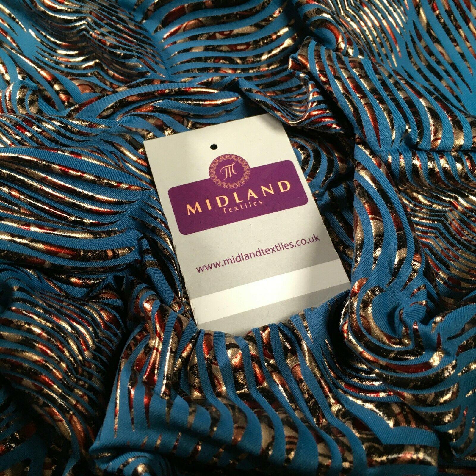 Description: Petrol Animal Print Spandex Jersey Foil Stretch Dress Fabric 150cm MU1317
