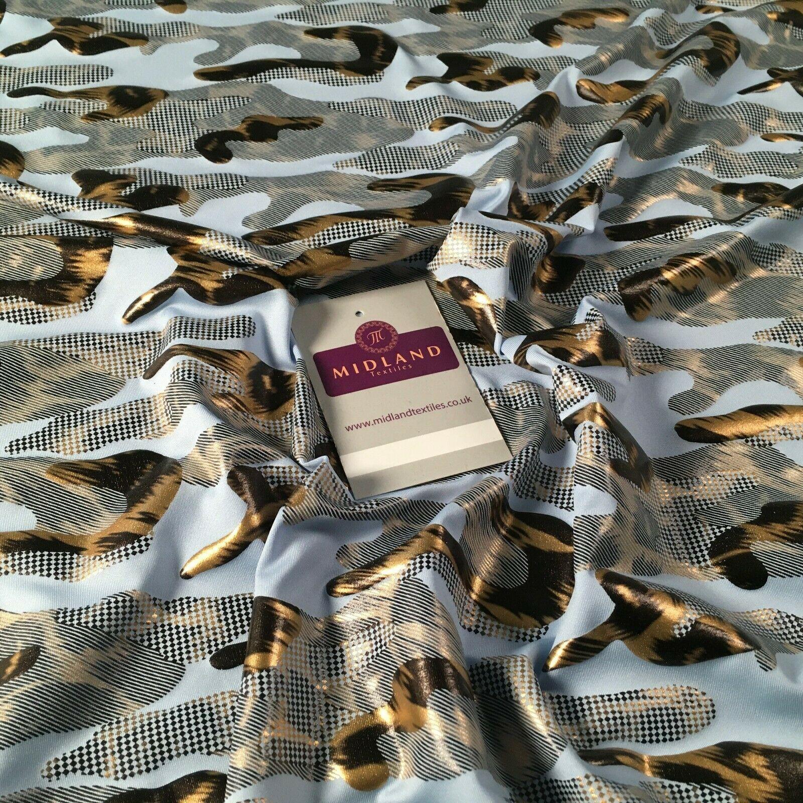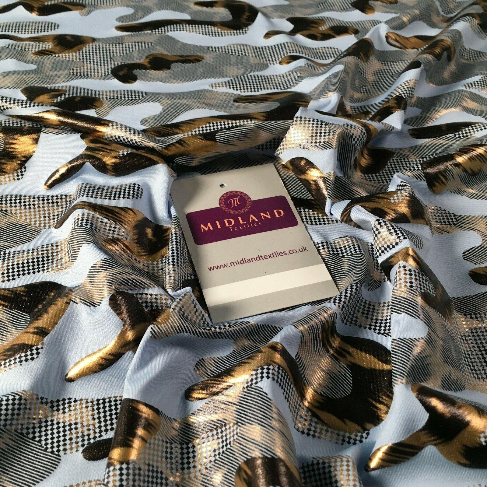 Description: Powder Blue Animal Print Spandex Jersey Foil Stretch Dress Fabric 150cm MU1311