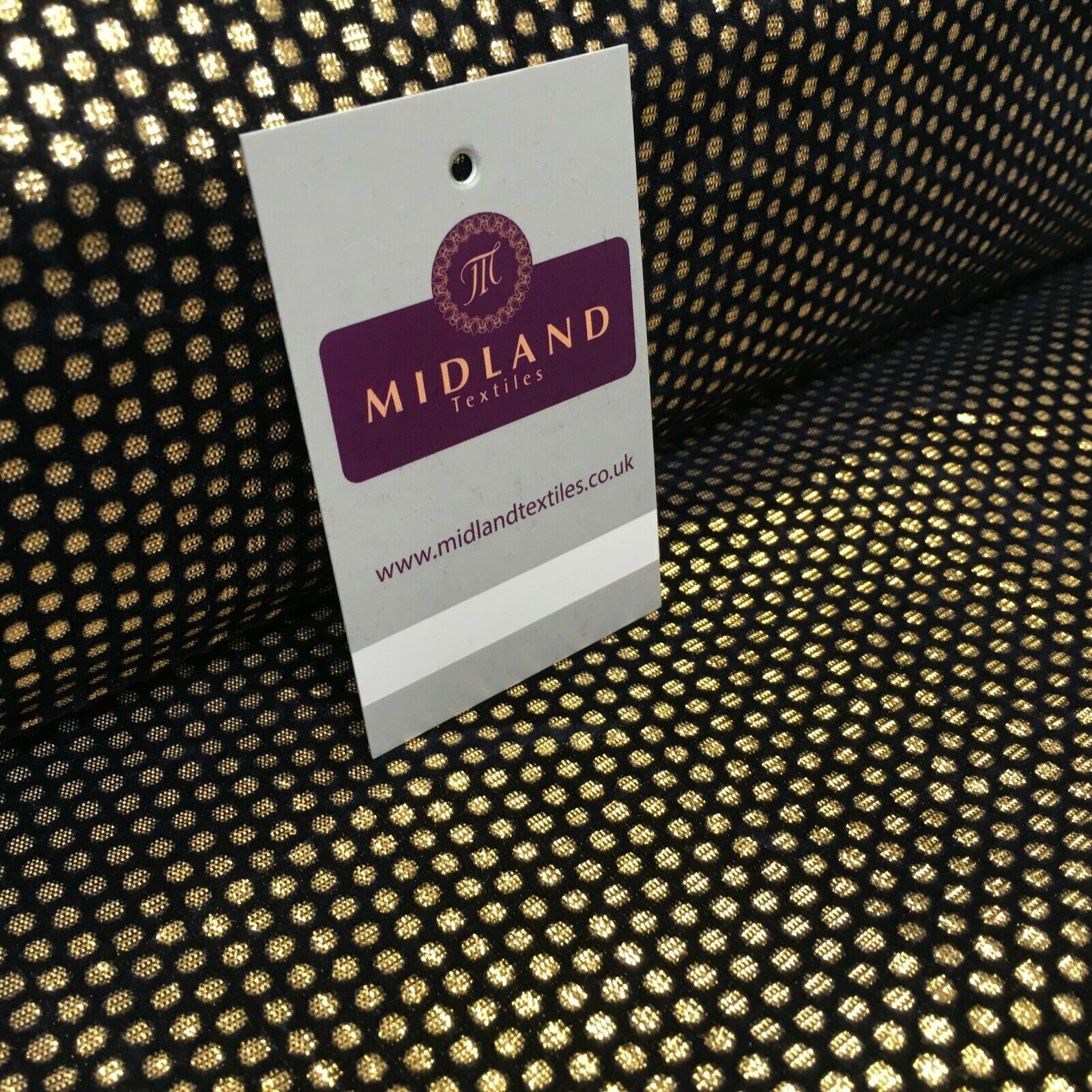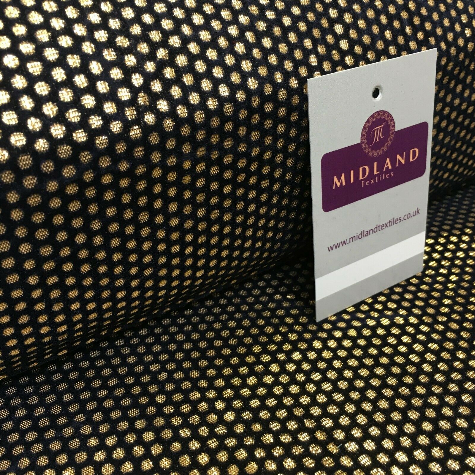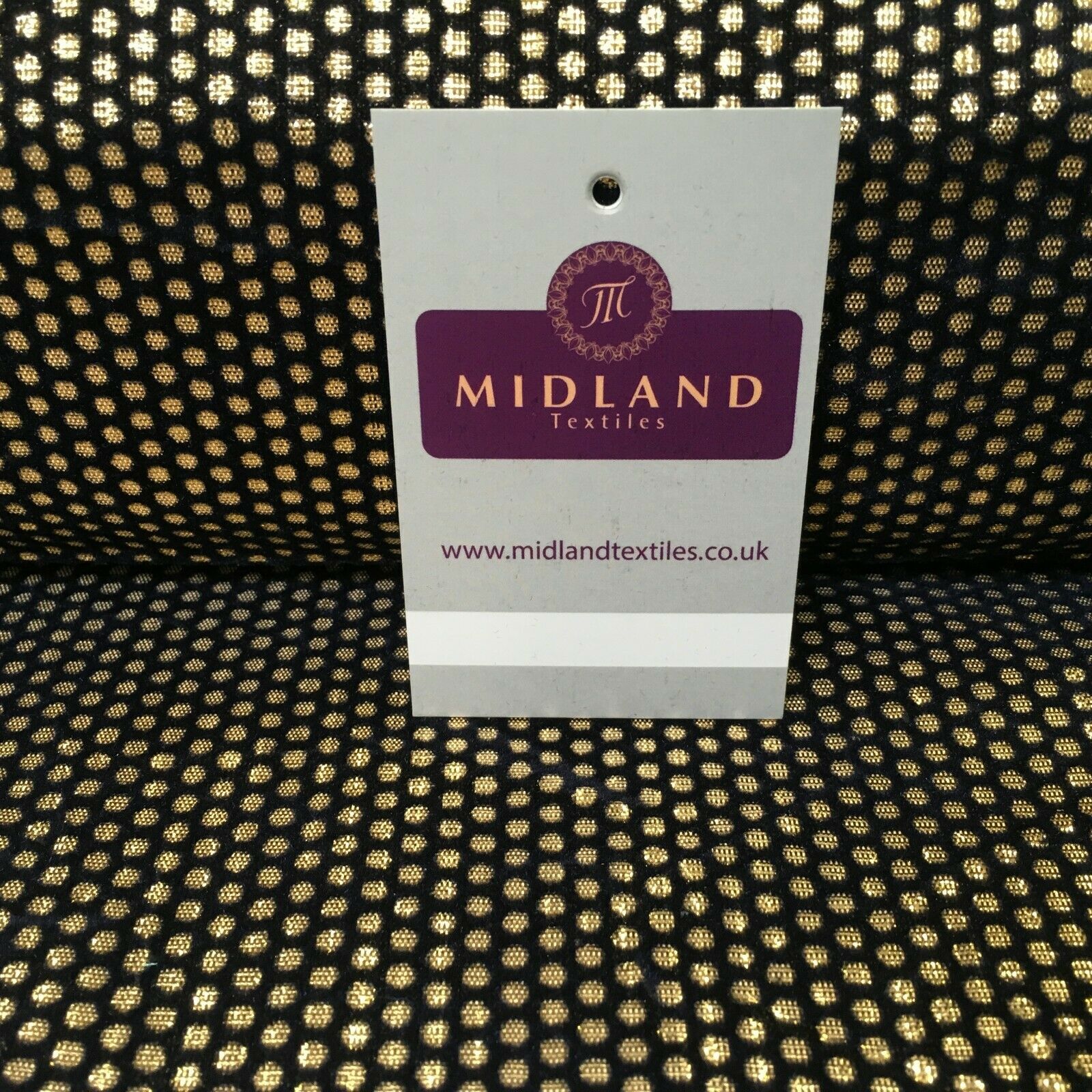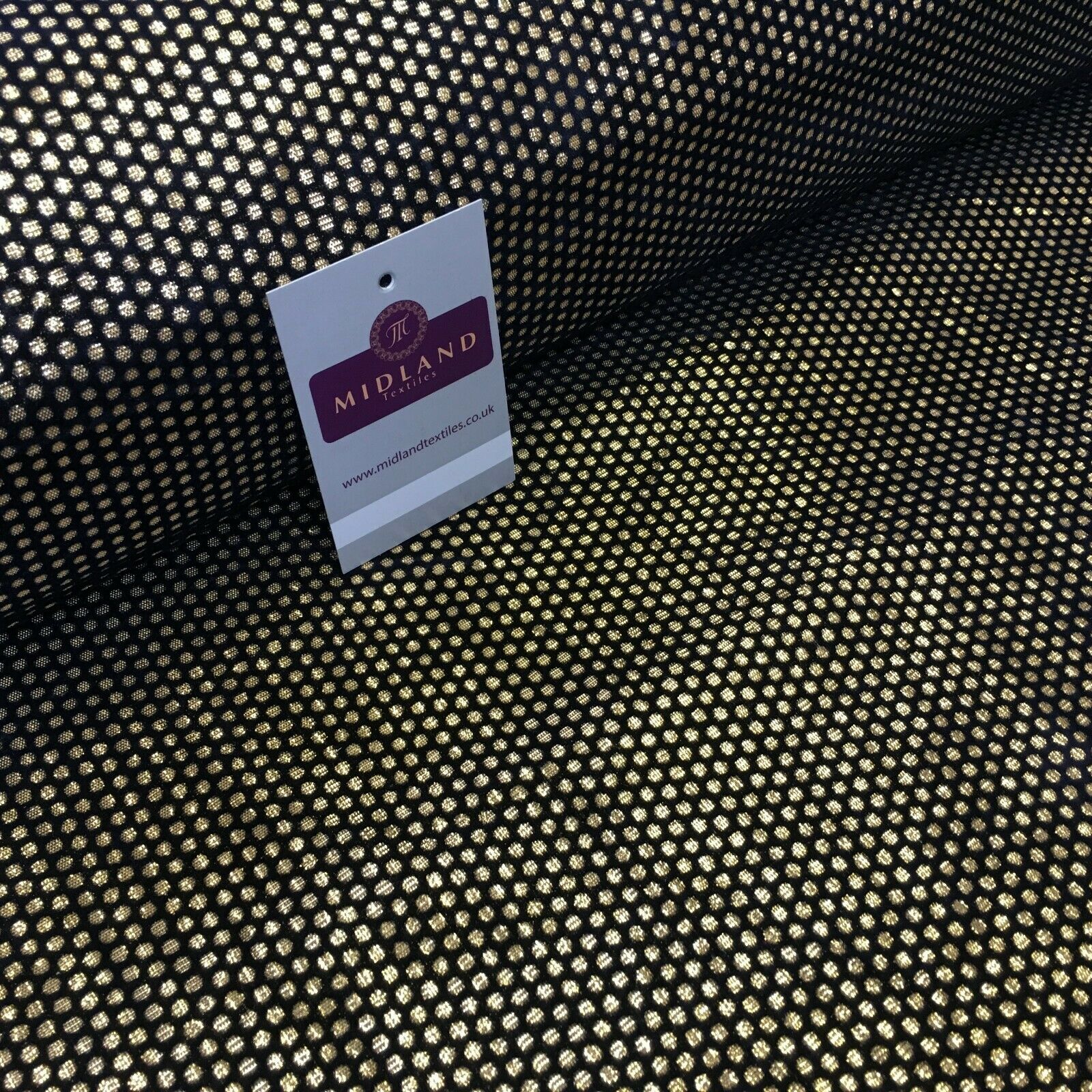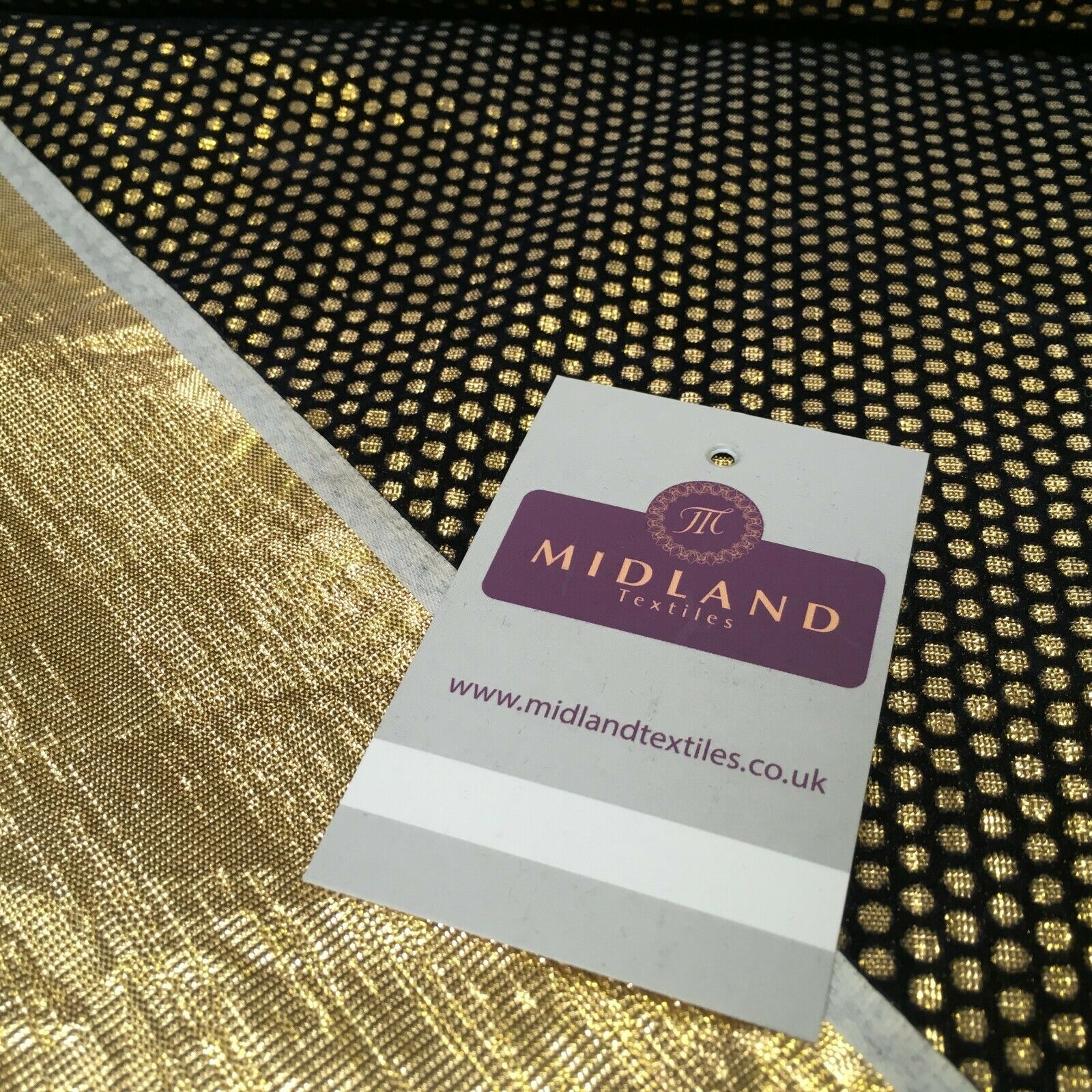 Description: Geometric Gold Spot Dot Flocked Lame Fabric 114 cm Wide MA1177 Mtex