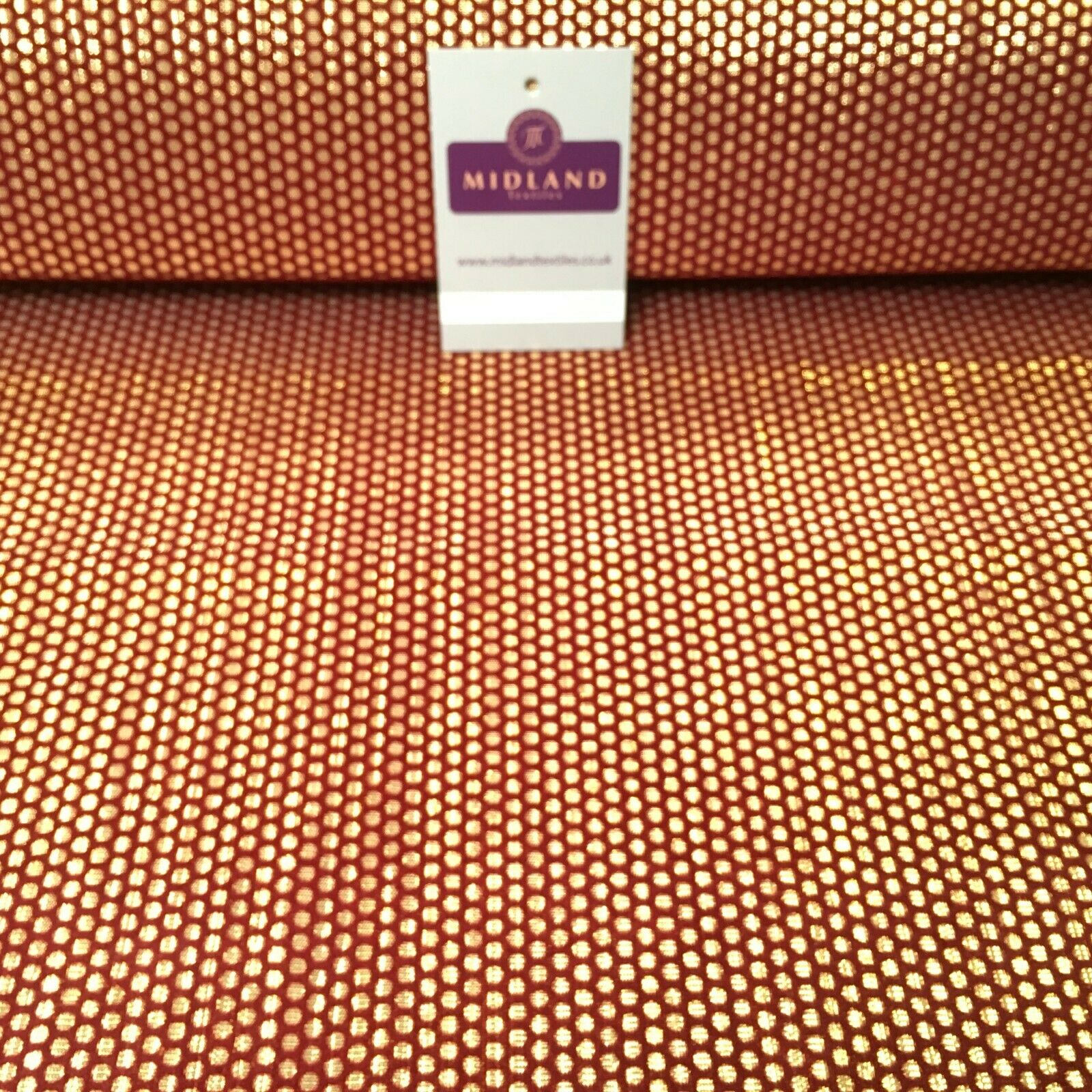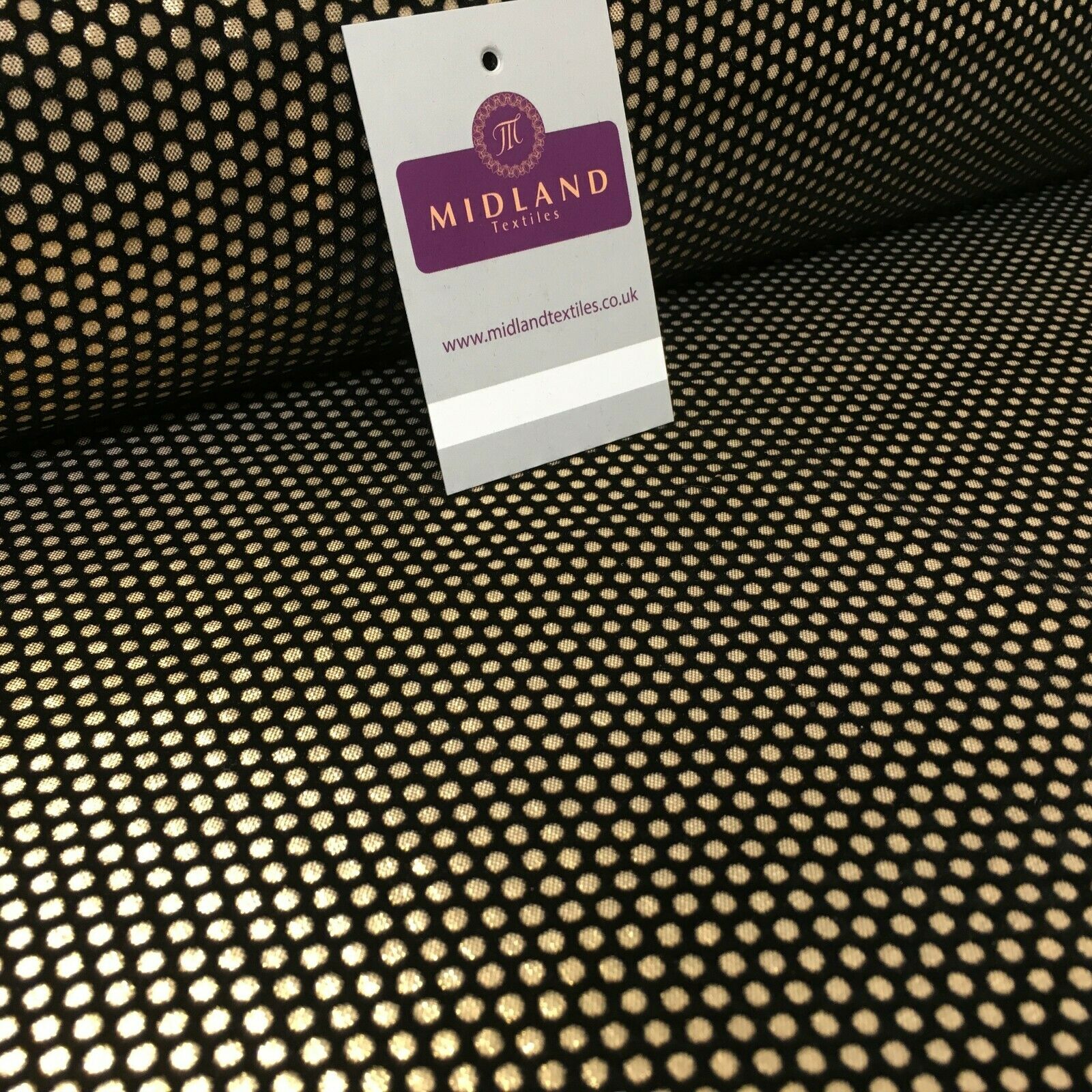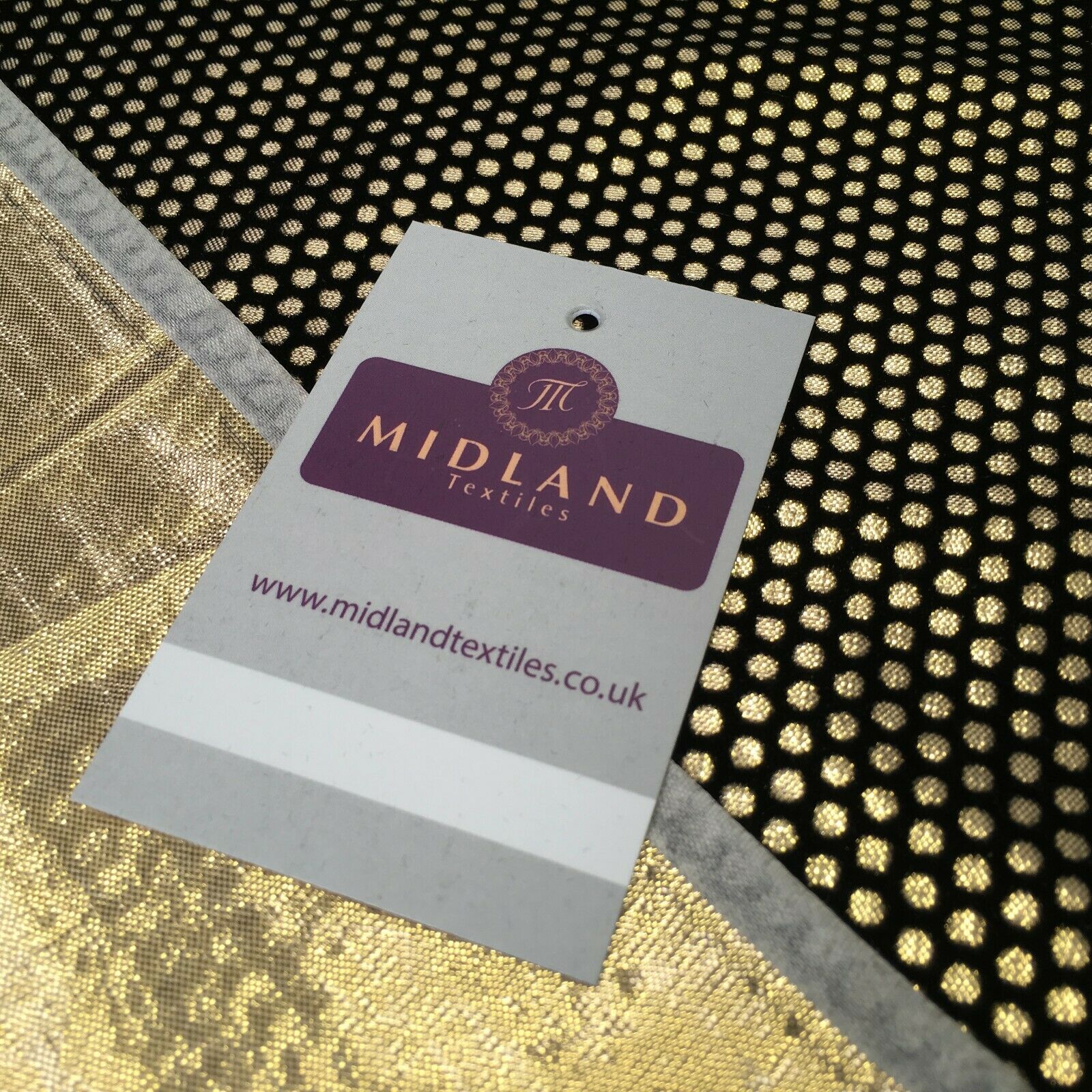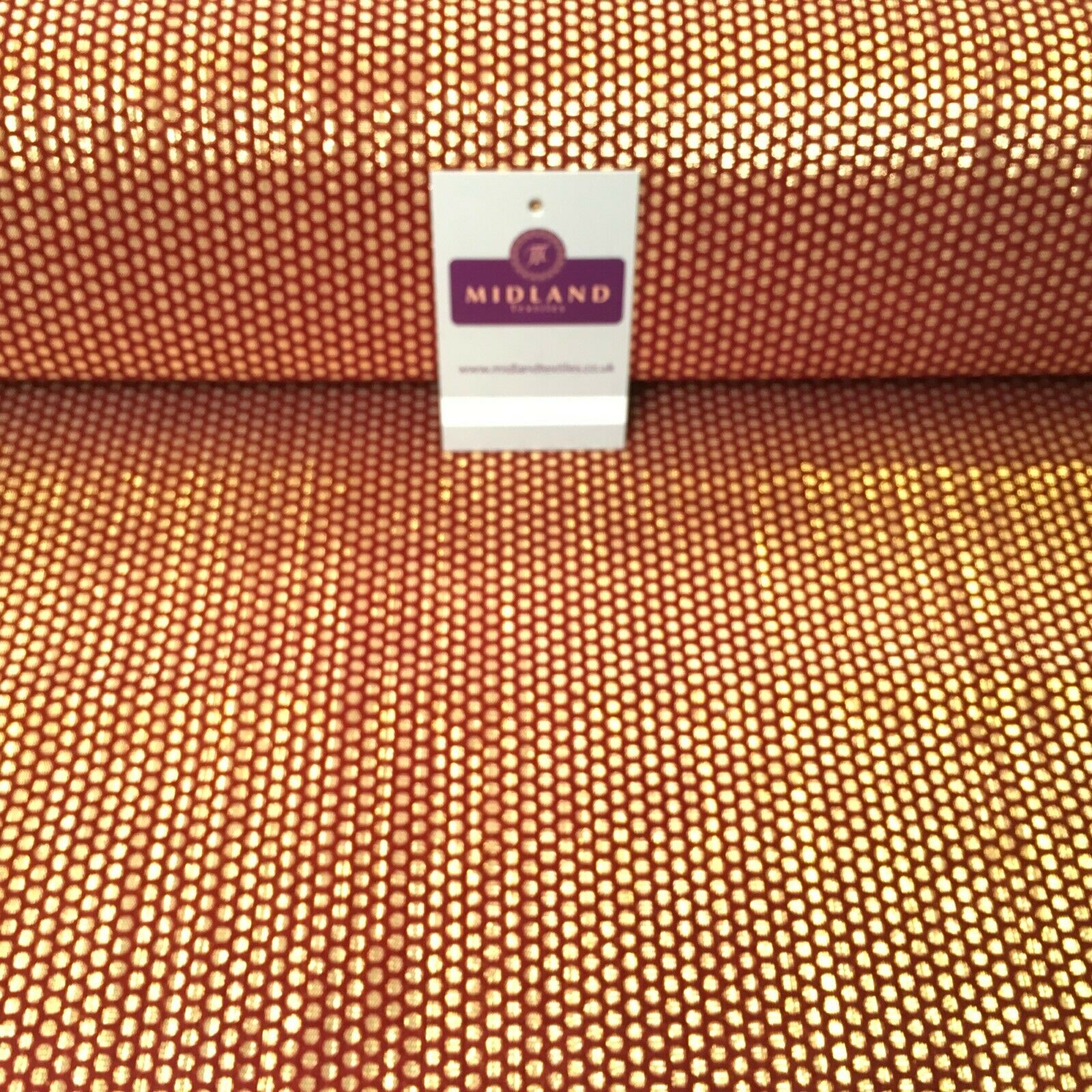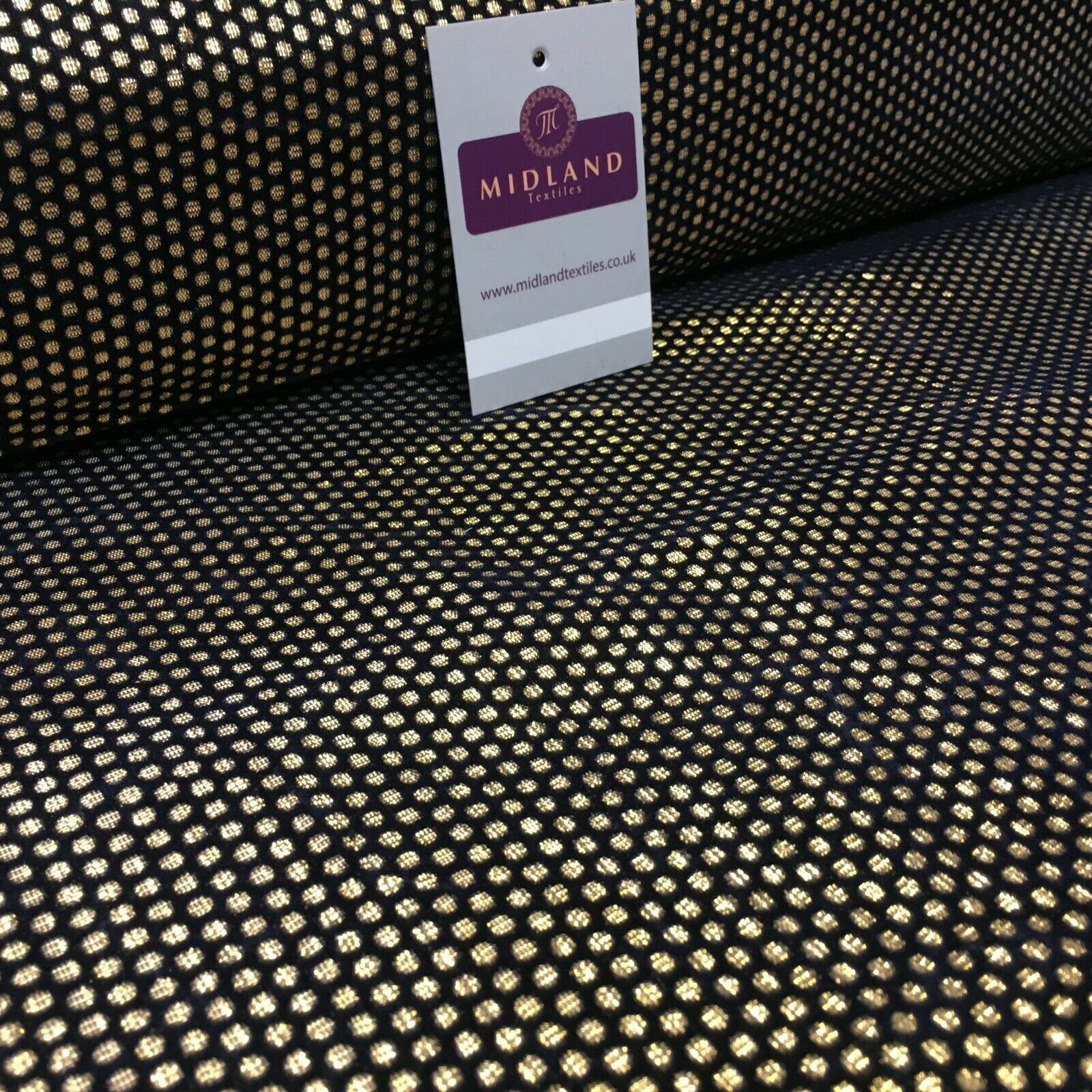 Description: Geometric Gold Spot Dot Flocked Lame Fabric 114 cm Wide MA1177 Mtex