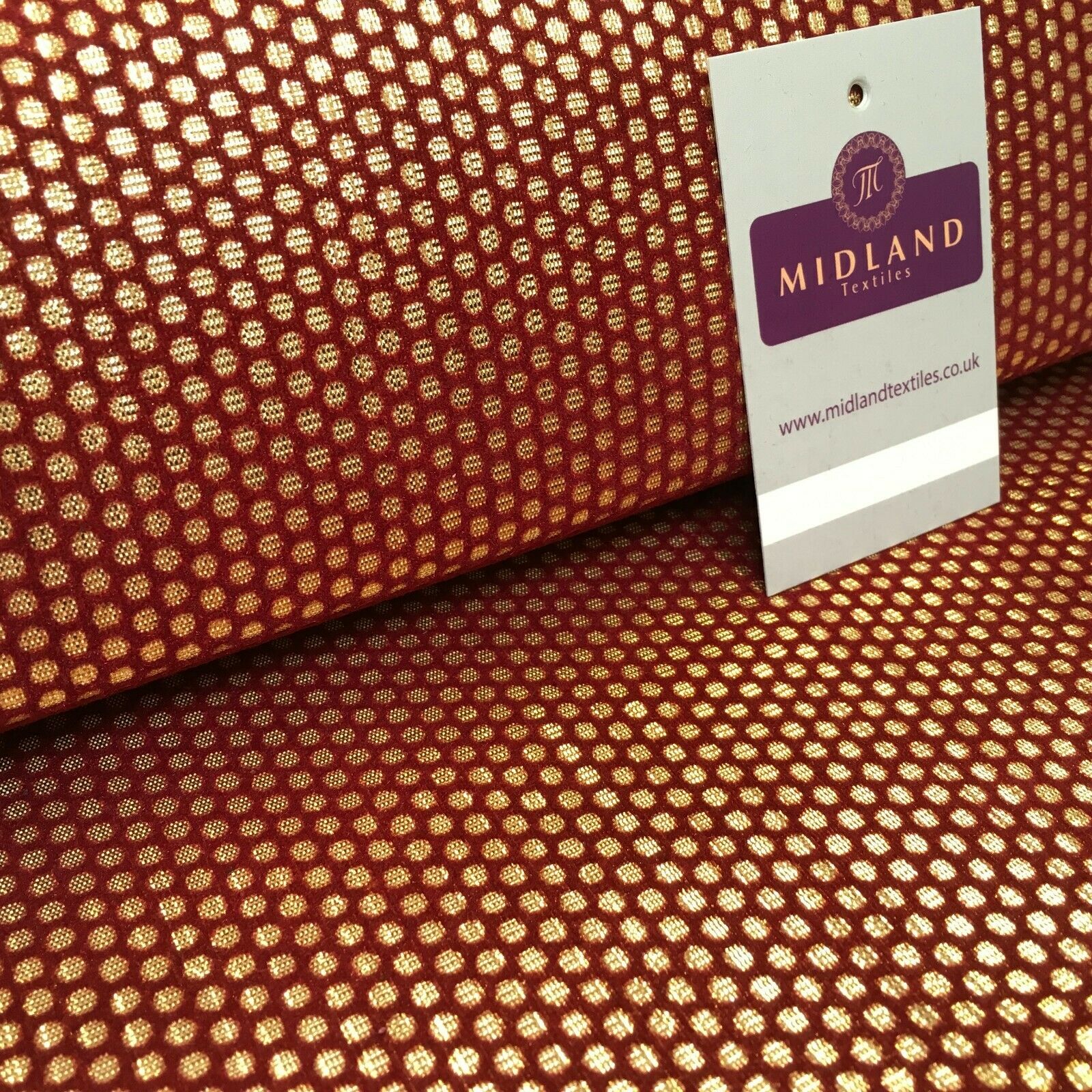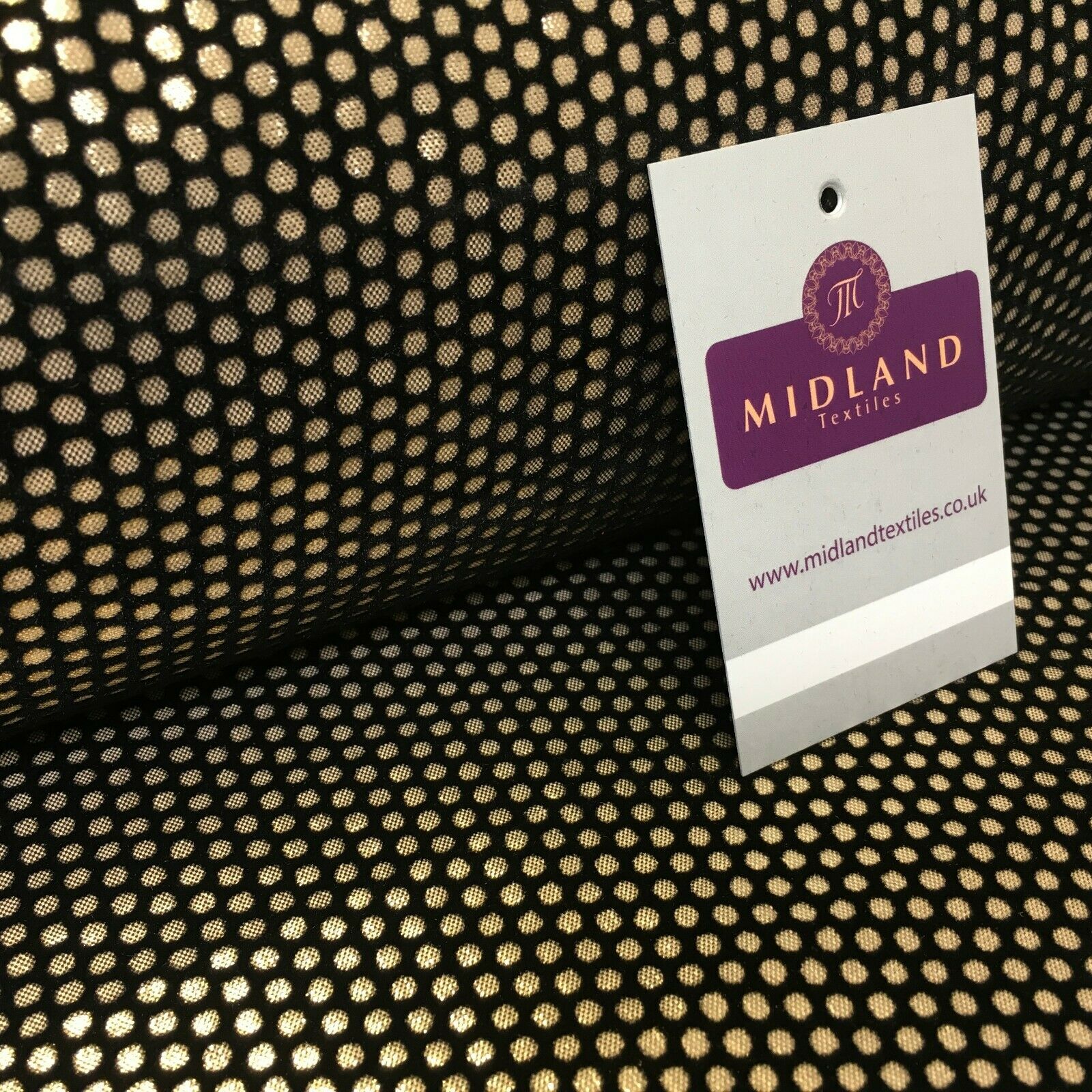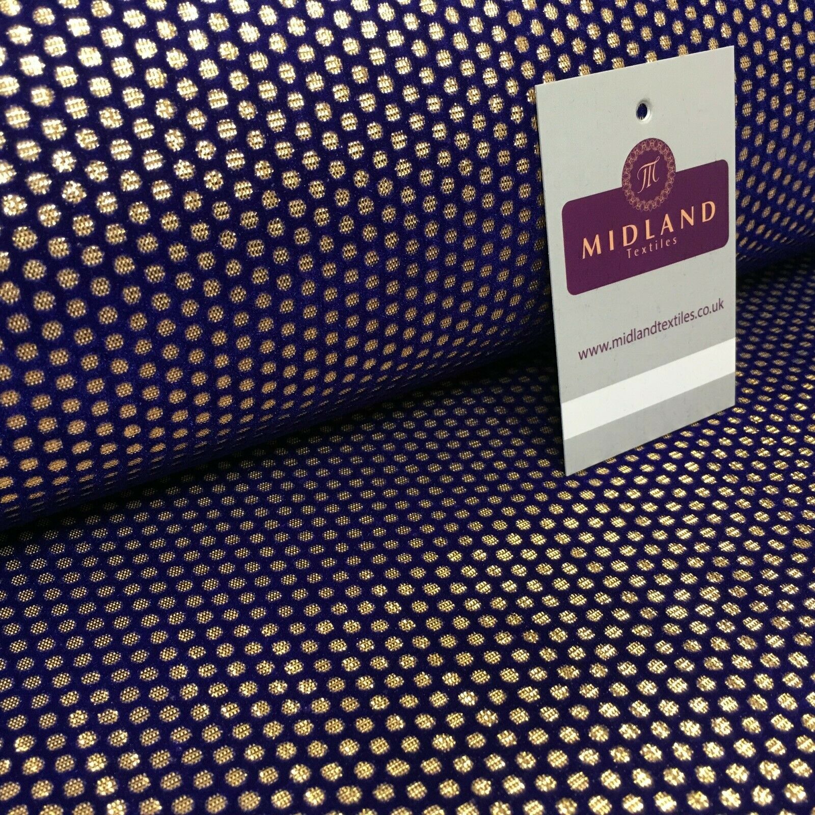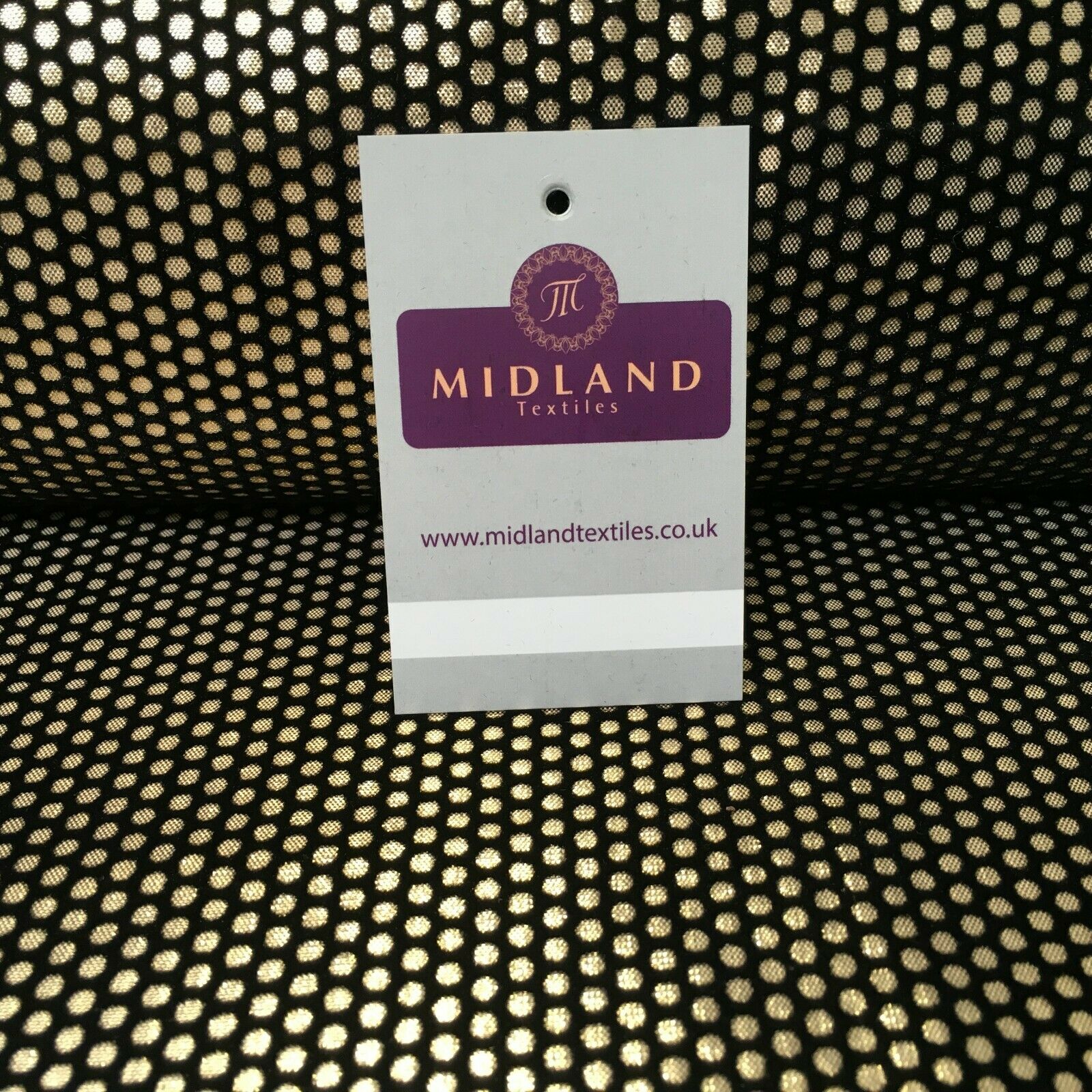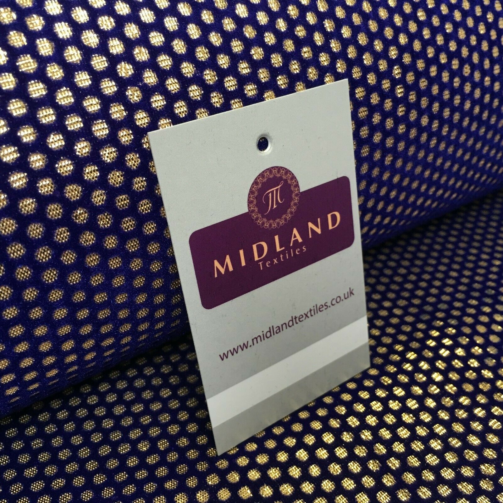 Description: Geometric Gold Spot Dot Flocked Lame Fabric 114 cm Wide MA1177 Mtex