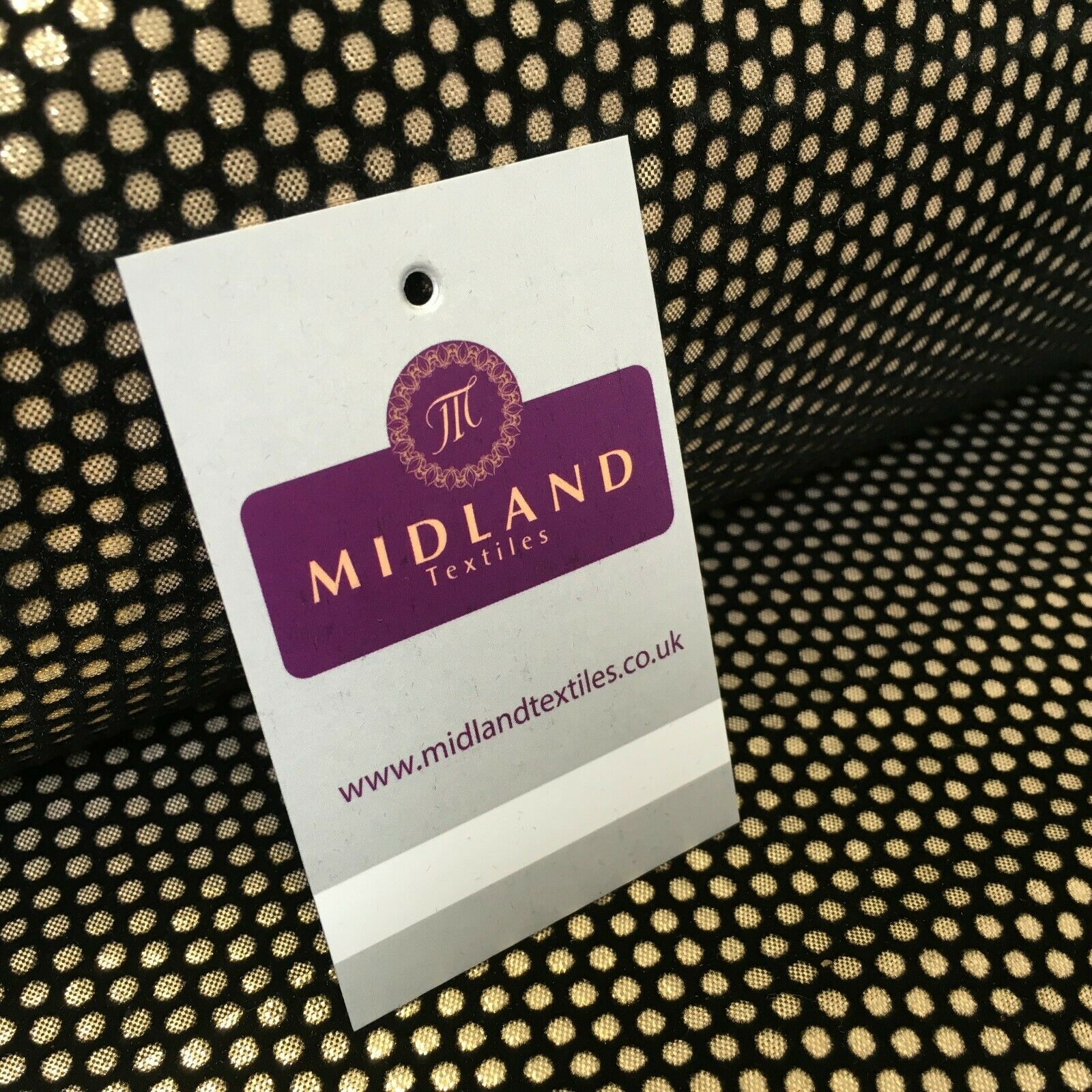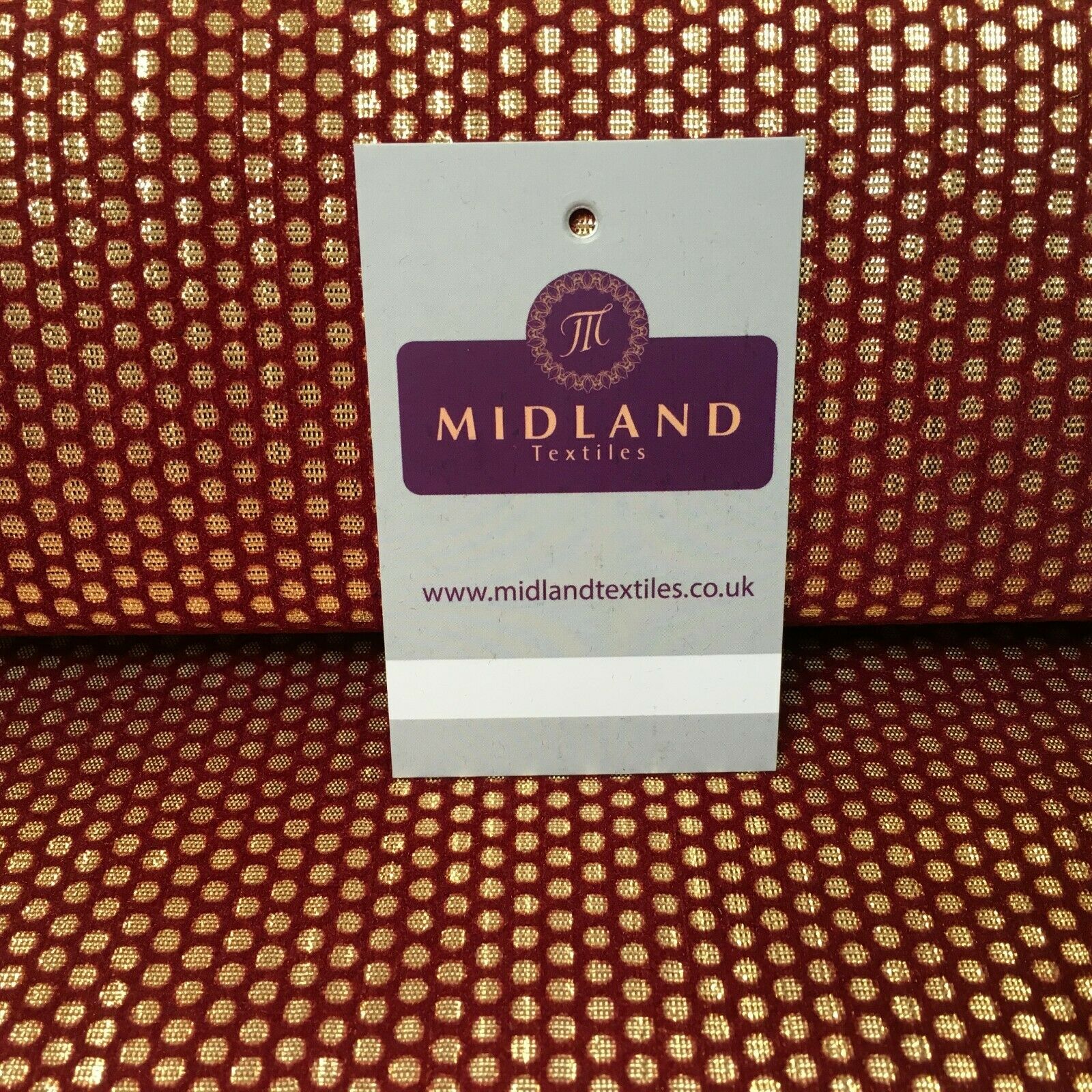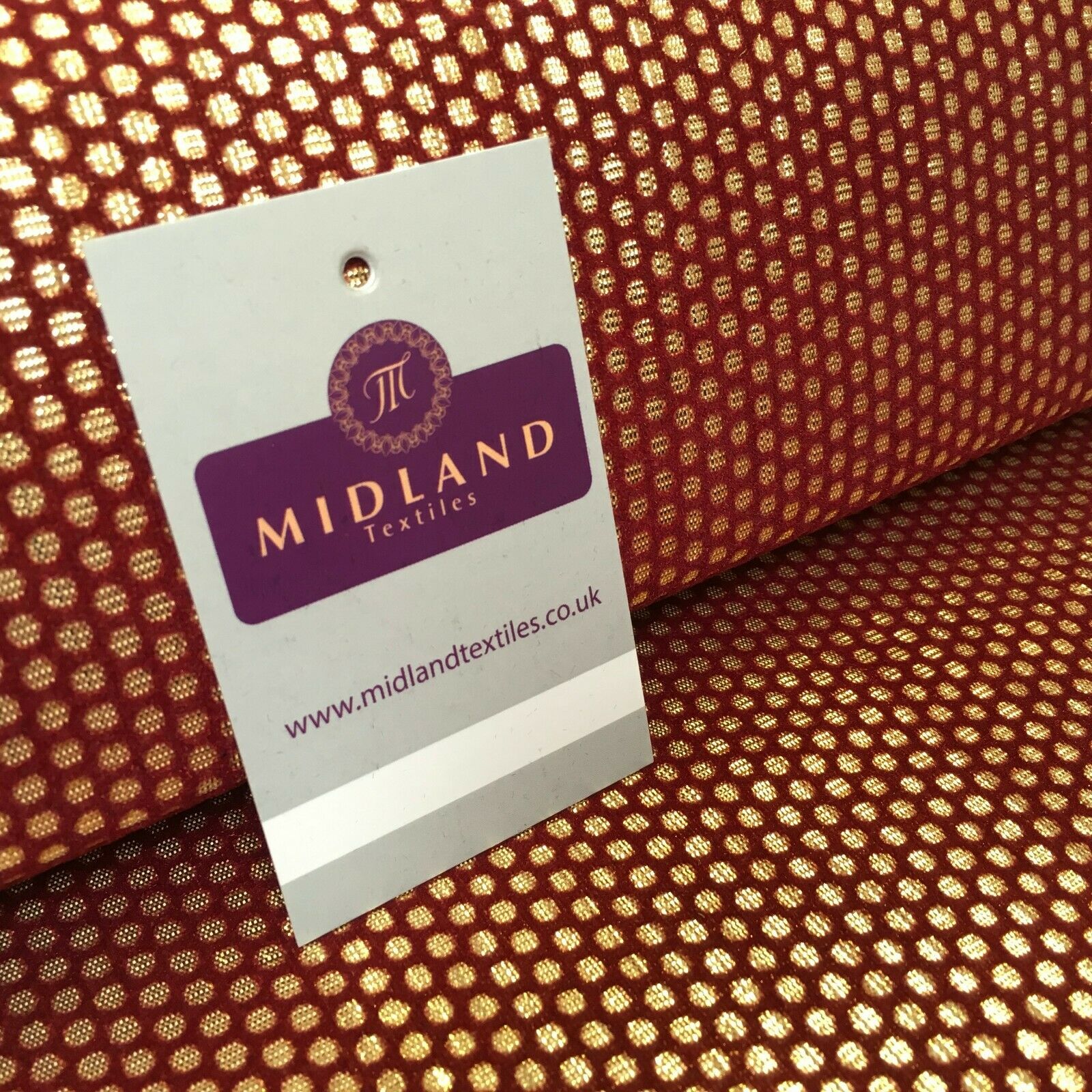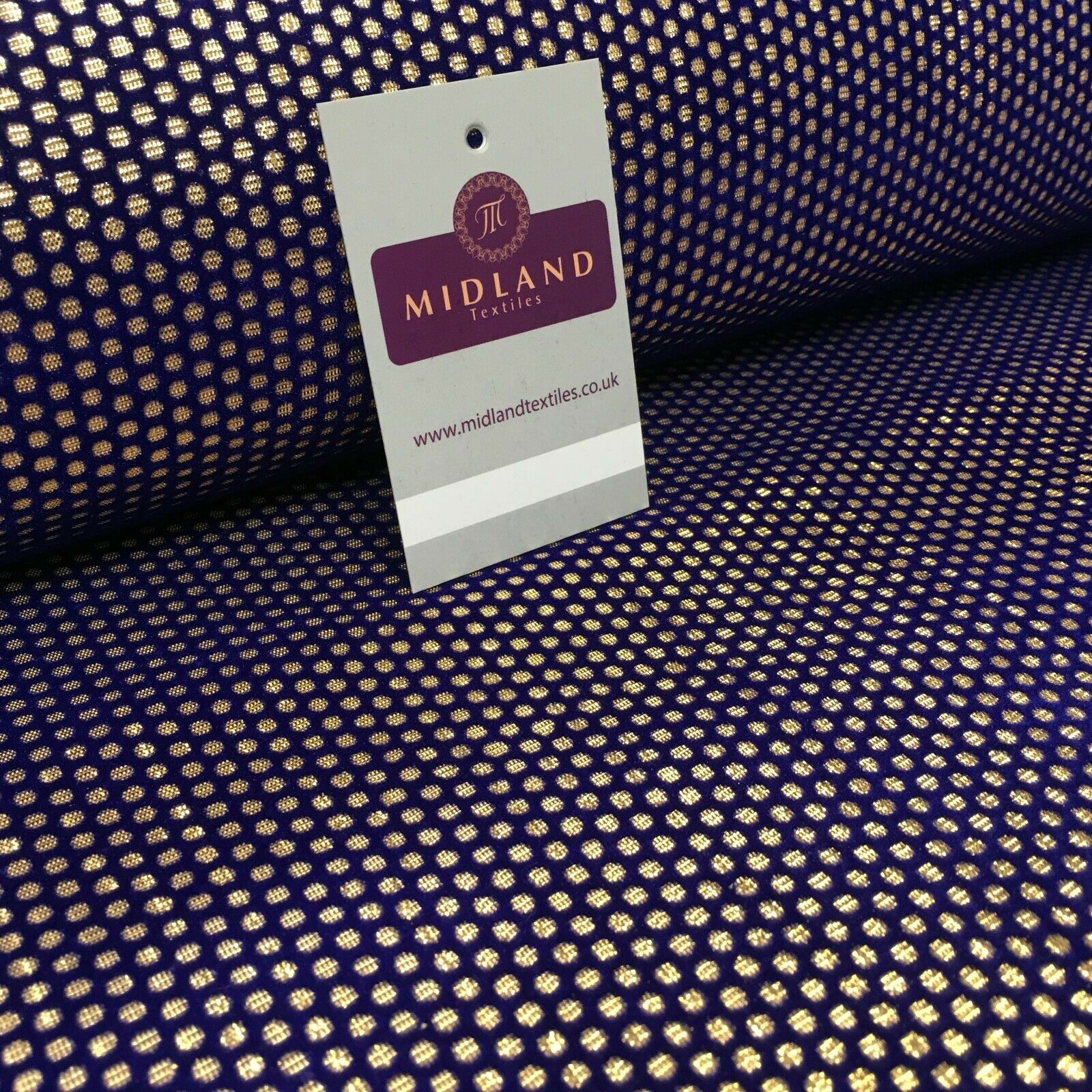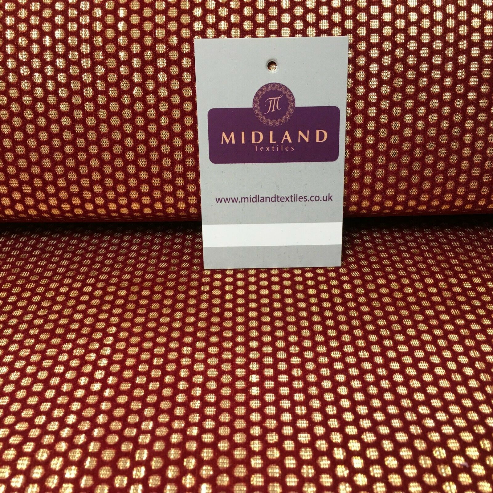 Description: Geometric Gold Spot Dot Flocked Lame Fabric 114 cm Wide MA1177 Mtex