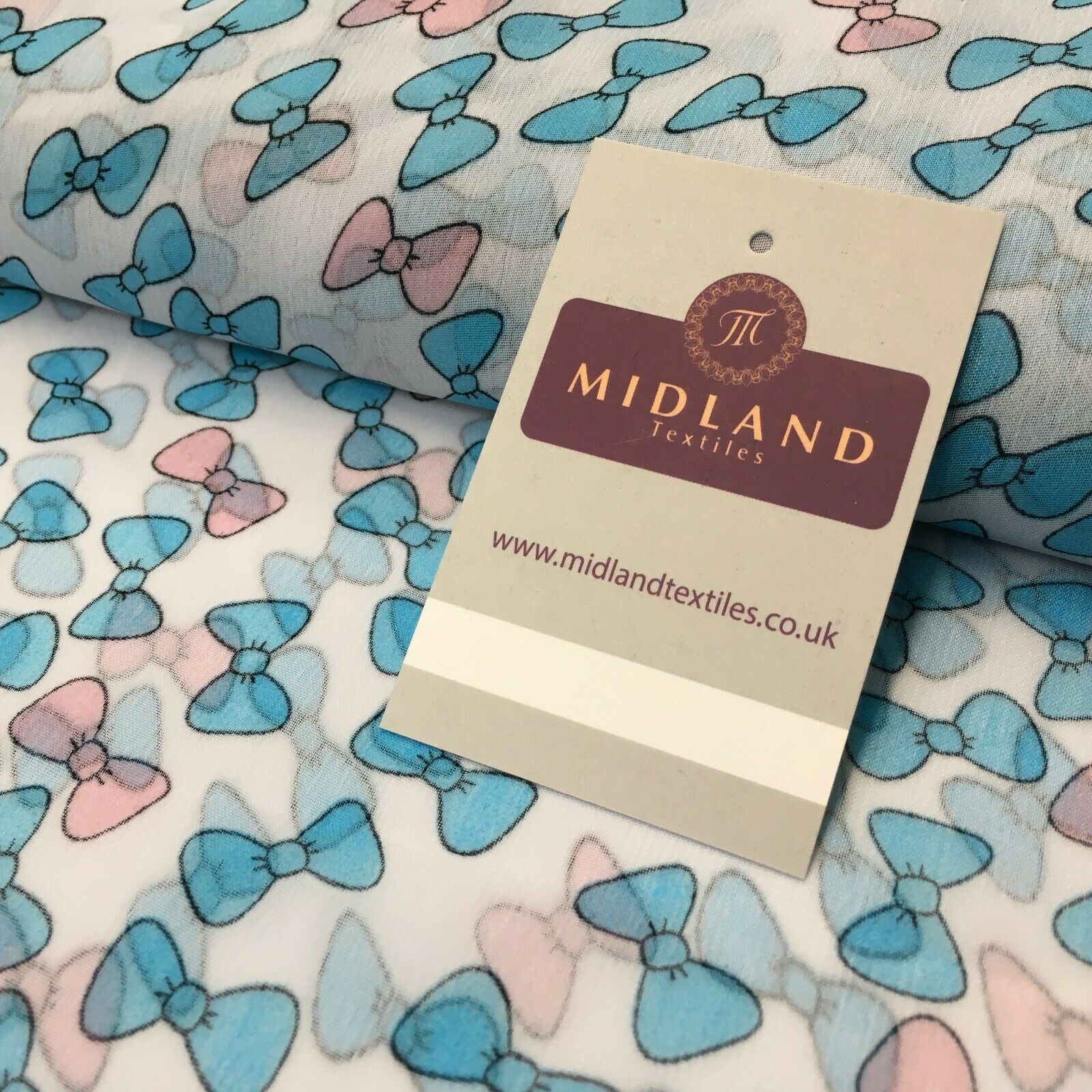 Blue Bows Printed Crinkle Georgette Chiffon Fabric 150cm wide MK1090-23