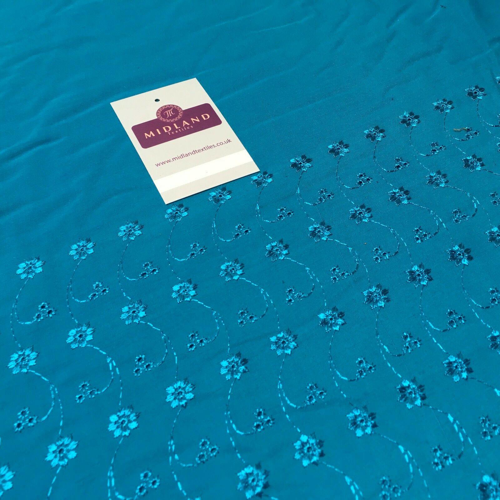 Transform any outfit into a work of art with our Broderie Anglais dress fabric! Made with poly cotton and featuring a beautiful floral border, this fabric is perfect for creating stunning dresses. Handwash for lasting quality. Available in 3 gorgeous colors. Measures 150 cm in width and sample size is approximately 10cm x 10cm.
