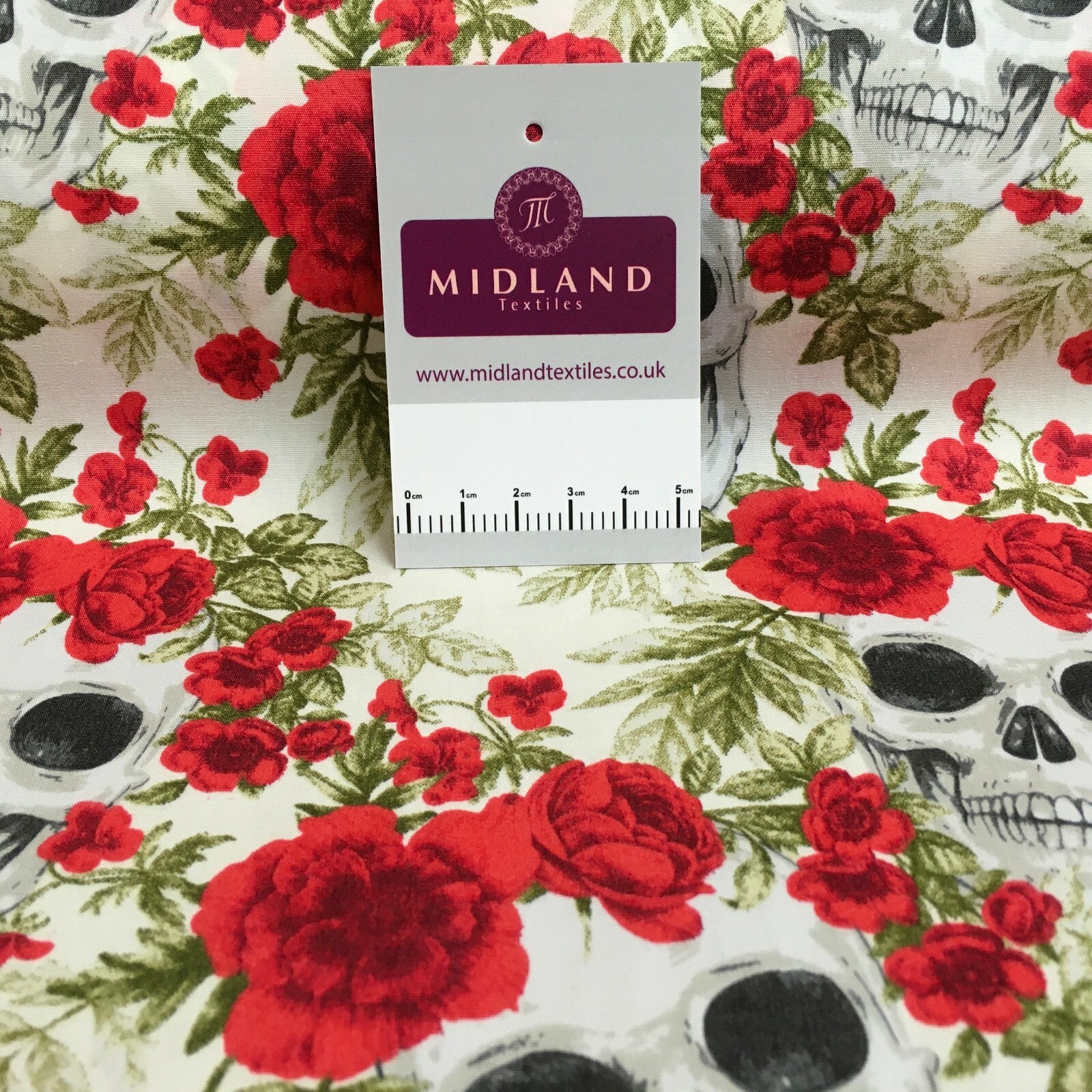 Description: Skull and roses printed 100% cotton poplin craft Fabric 110 cm MD1395 Mtex