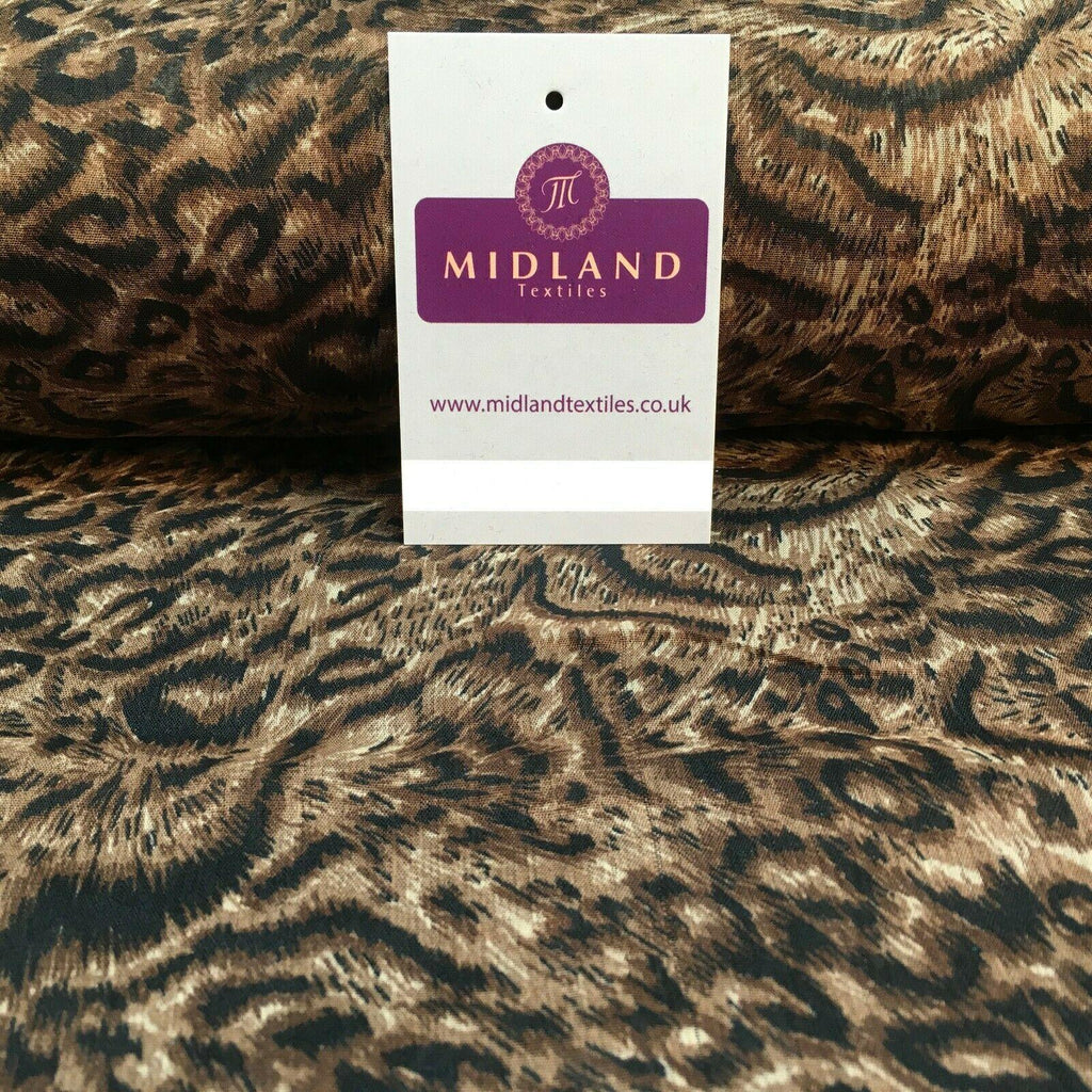 Midland Textiles LimitedItem Number MR1147Description: Animal Printed Lightweight Chiffon Fabric 110cm Wide MR1147 Mtex7 Colour: Width 110 cmSample Size approx 10cm * 10cmWashing Instructions: HandwashRETURNS POLICY: Once cut and despatched we cannot refund fabric orders, Please order a sample to avoid disappointment.If you have received a damaged or faulty item please contact us and we will do our best to resolve the problem as quickly as possible and without any further cost to yourself.