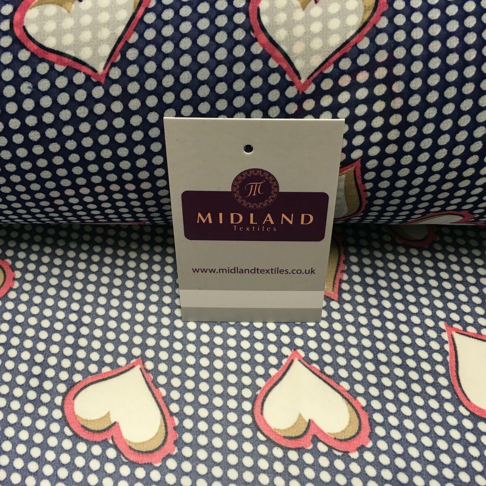 Midland Textiles LimitedItem Number MK1190-23Description: Blue Pink Heart Spot Printed Crepe chiffon Dress Fabric 150 cm MK1190-23 Mtex1 Colour: Width 150 cmSample Size approx 10cm * 10cmWashing Instructions: HandwashRETURNS POLICY: Once cut and despatched we cannot refund fabric orders, Please order a sample to avoid disappointment.If you have received a damaged or faulty item please contact us and we will do our best to resolve the problem as quickly as possible and without any further cost to yourself.